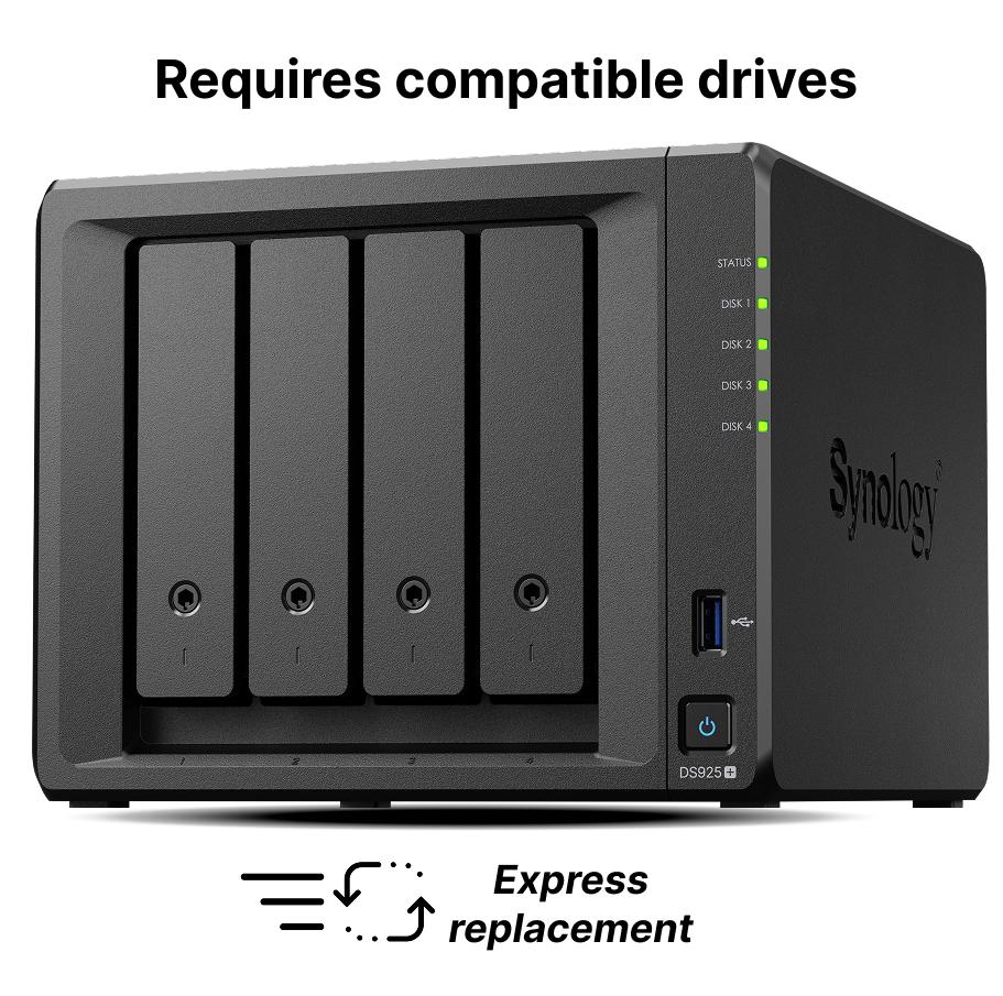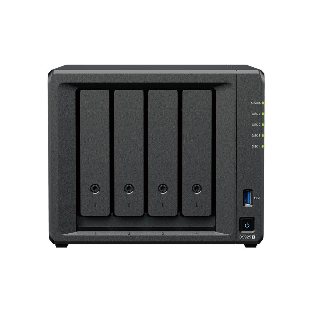 Мрежов сторидж Synology NAS DS925+, за 4 диска, AMD Ryzen V1500B, 4GB DDR4 SODIMM