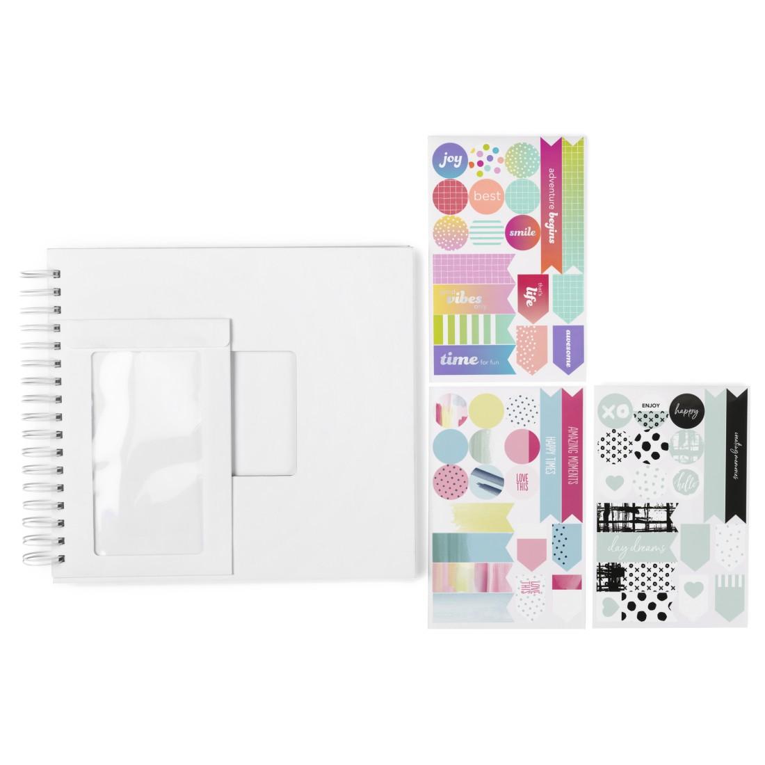 Комплекта включва: 3 листа със стикери, по 19 стикера всеки Спирален албум, 28 x 24 cm, бяла корица, 50 бели страници Джоб за съхранение с прозорец, 12,5 x 18,5