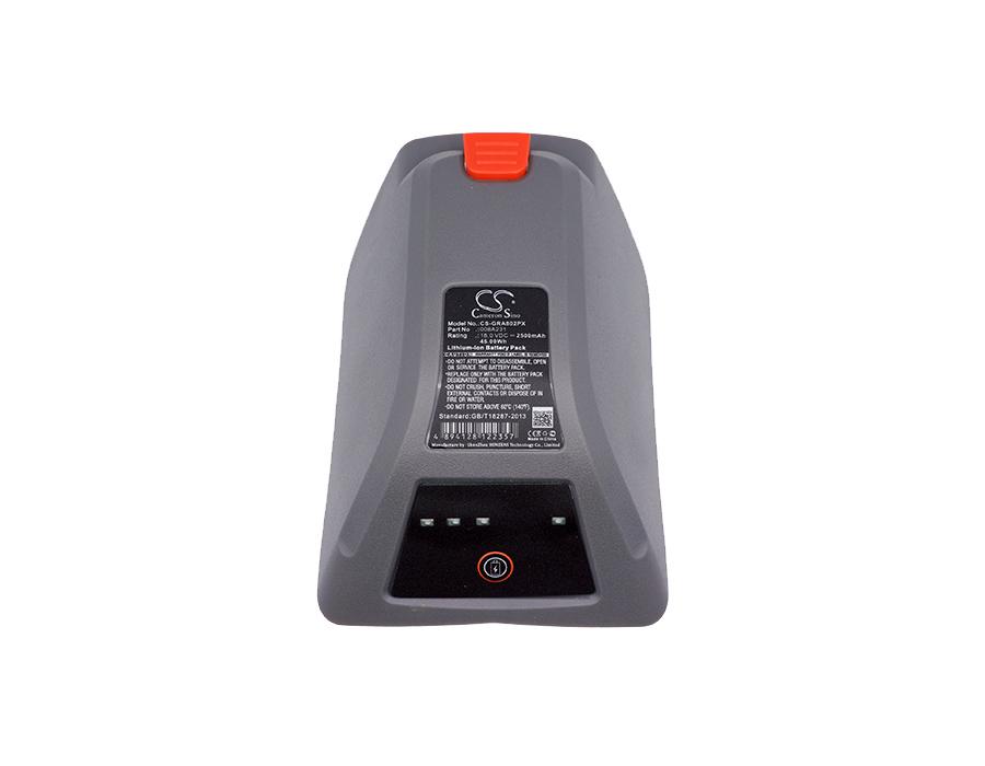 Item No.: CS-GRA802PX Type: Li-ion Capacity: 2500mAh / 45.00Wh Voltage: 18.0V Color: Grey Dimension: 139.00 x 98.80 x 81.40mm EAN Code: 4894128122357 Net Weight: 380.0g / 13.40oz