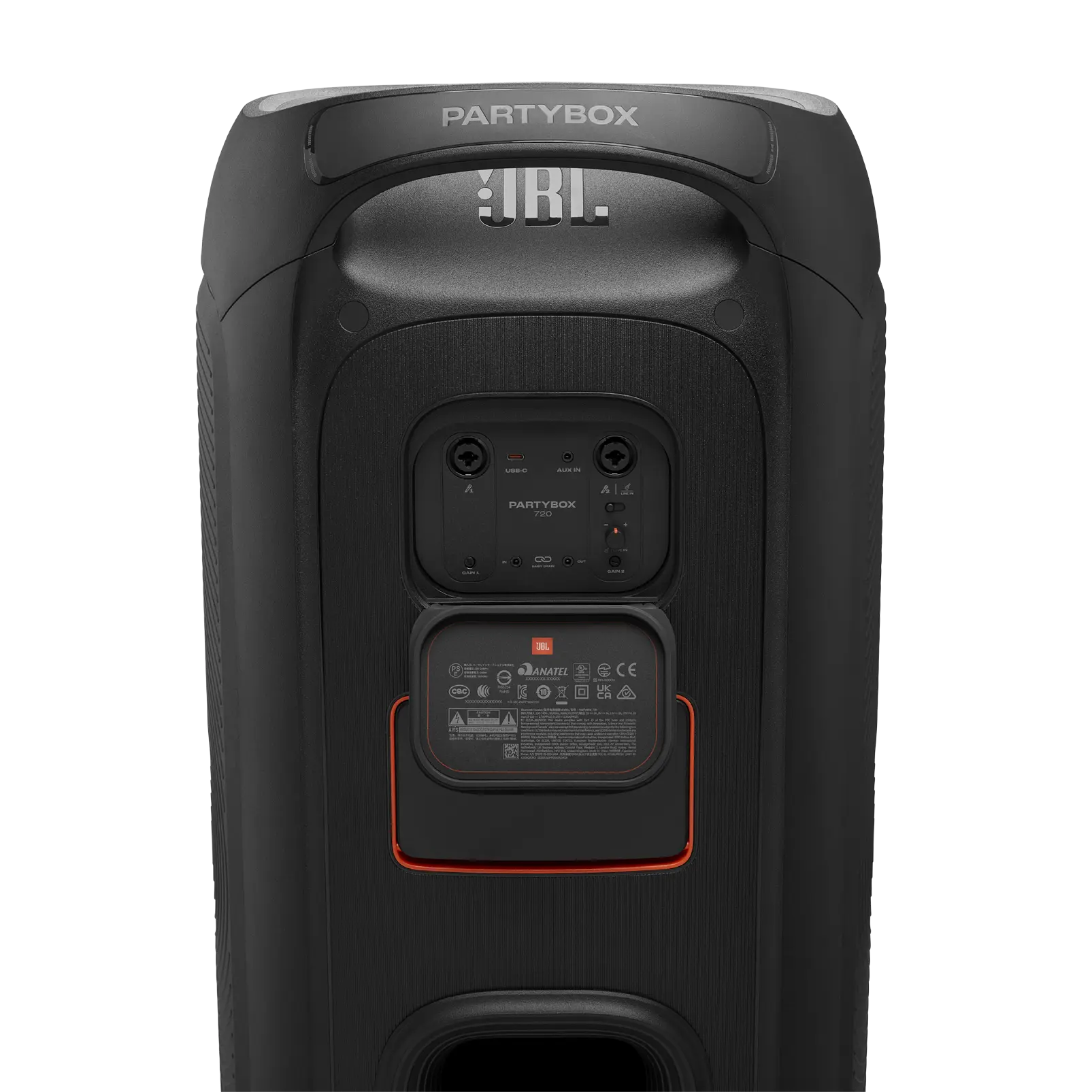 JBL PartyBox 720 е най-мощната батерийна колонка от серията PartyBox досега – създадена за големи събития, караоке вечери и безкрайни партита. Звук и мощност 800W RMS : 2 x 9″ (243 мм) субуфери 2 x 1.25″ (30 мм) високочестотни говорители JBL Original Pro Sound: за дълбок бас и чисти високи честоти AI Sound Boost: анализира музиката в реално време и оптимизира звука за максимална сила с минимални изкривявания. Честотен обхват : 32 Hz – 20 kHz – покрива целия спектър от бас до високи. Светлинно шоу RGB ефекти : звездни проблясъци, светлинни следи и стробоскопи, синхронизирани с музиката. Контрол чрез JBL PartyBox App : настройваш светлината, еквалайзера и свързаните устройства директно от телефона. Батерия и мобилност До 15 часа възпроизвеждане с едно зареждане. Бързо зареждане : 10 минути = 2 часа музика. Пълен заряд: за 3 часа Сменяема батерия – продължаваш партито без прекъсване. Телескопична дръжка и широки колела – лесно пренасяне навсякъде. Караоке и инструменти Два XLR входа – за микрофон, китара или DJ пулт. USB-C аудио вход – за висококачествена връзка със стрийминг или караоке приложения. Издръжливост и свързаност IPX4 защита – устойчив на пръски, идеален за градина или басейн. Bluetooth 5.4, USB, AUX – пълна гъвкавост. Auracast™ : свързваш няколко JBL устройства за масивен звук. Еко подход Изработена от рециклирана пластмаса , опаковка от FSC-сертифицирана хартия , отпечатана със соево мастило .