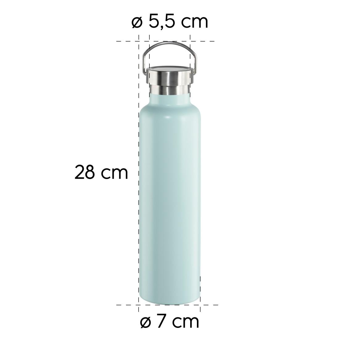 Бутилка за течности Xavax To Go, 750 ml,неръждаема стомана, двойна изолация, винтова капачка Вместимост 750 мл Диаметър (Дъно) 7 см Диаметър (горна) 5,5 см Височина 28 см Материал вътрешен контейнер: Неръждаема стомана Топлите напитки остават горещи около 9 часа, студените напитки около 12 часа. Непропусклива винтова капачка. Устойчива на плодови киселини и безопасен за храна: Материалът не оставя никакви аромати. Запушалката предпазва от оси и други насекоми – идеална при туризъм, барбекю или разхлаждане край езерото. Децата също могат да пият от бутилката безопасно.