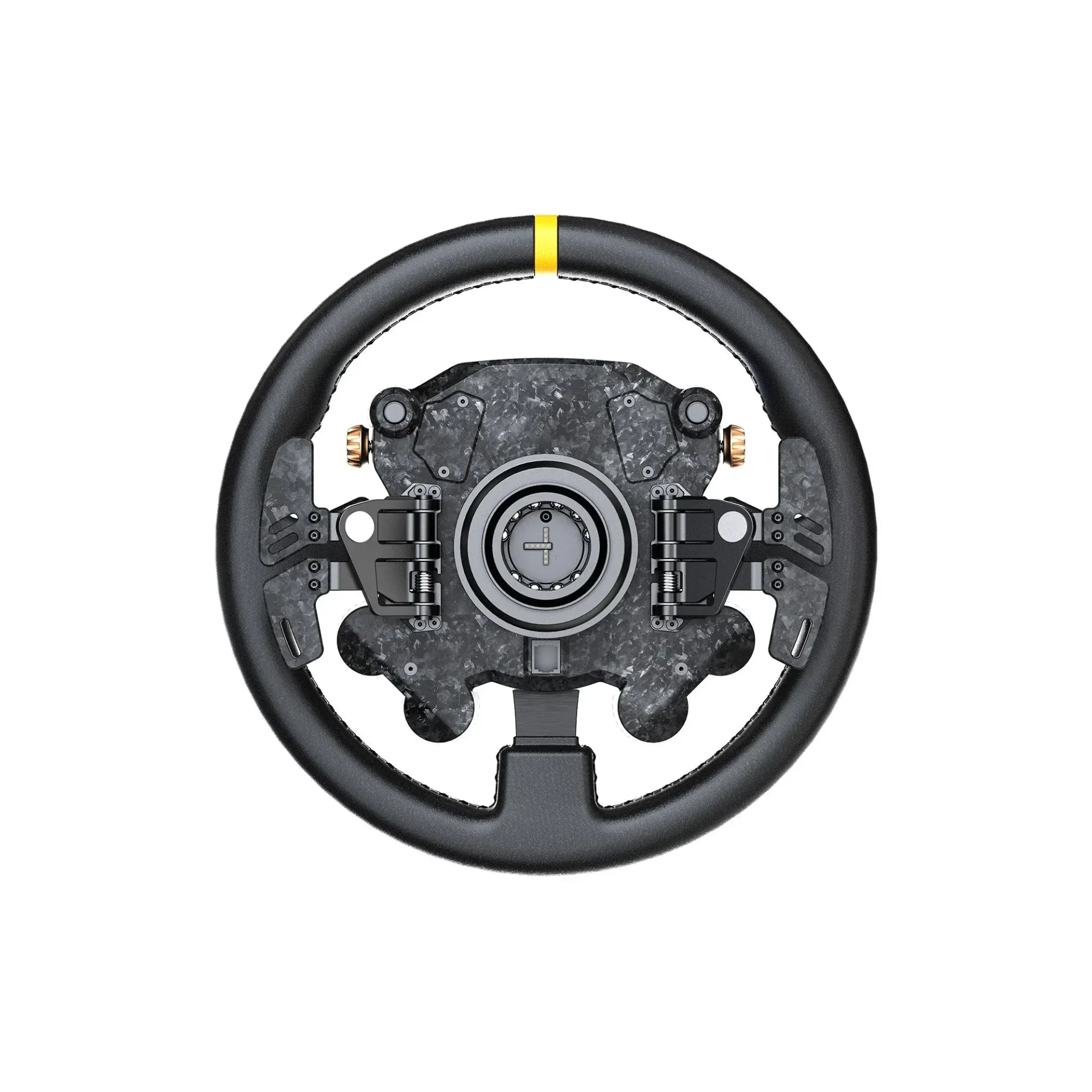 MOZA CS Pro Steering Wheel е премиум 13-инчов състезателен волан, създаден за прецизност, издръжливост и максимална реалистичност. С алуминиева конструкция, магнитни пера, RGB подсветка и пълна съвместимост с екосистемата на MOZA, той предлага висок клас изживяване както за ентусиасти, така и за състезателни пилоти. Премиум изработка – Алуминиева рамка и висококачествени материали осигуряват здравина и реалистично усещане. 13-инчов реалистичен размер – Диаметър от 330 мм за по-добър контрол и по-дълбока имерсия при GT, туринг и улични категории. RGB механични бутони – Персонализираща се RGB подсветка за по-лесна ориентация и модерен професионален вид. Hall Effect магнитни пера – Безконтактни сензори за прецизно, надеждно и дълготрайно превключване без механично износване. Алуминиеви магнитни падъл шифтери – Осигуряват отчетливо и приятно тактилно усещане при всяко превключване. Многофункционално управление – Джойстици, енкодери и програмируеми бутони за бърз достъп до настройки по време на състезание. MOZA Quick Release система – Мигновена и сигурна смяна на волани без инструменти. Поддръжка чрез MOZA Pit House – Пълна софтуерна персонализация на бутони, подсветка, телеметрия и настройки. Широка съвместимост – Работи с MOZA R5, R9, R12, R16 и R21 бази, което го прави гъвгав ъпгрейд за всеки MOZA потребител.
