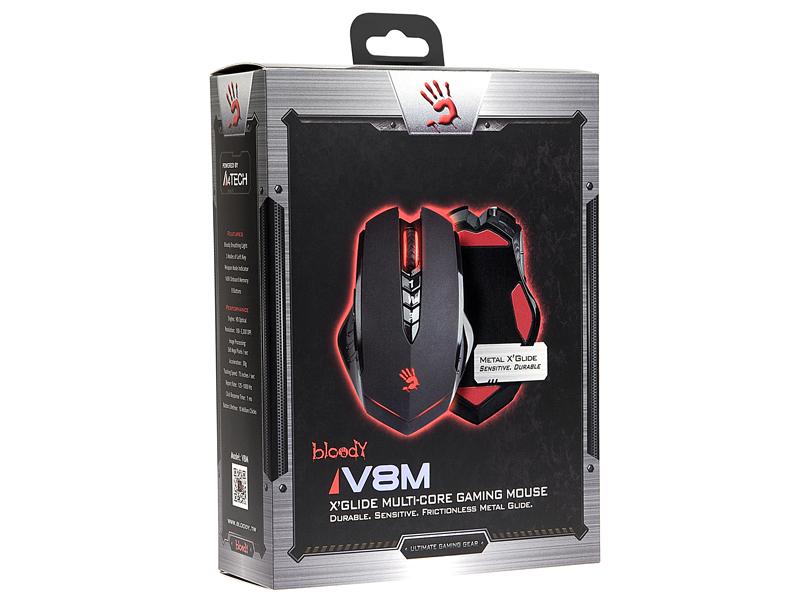 Bloody V8m Геймърска оптична мишка Bloody V8m е оптична геймърска мишка, която би трябвало да допадне на любителите на FPS игри поради специфичните си възможности. Под скрола отново може да намерите класическите “1” “N” “3” бутона, чрез които задействате различни режими на работа за левия бутон на мишката. Чрез “1” и “3” съответно стреляте по един или три пъти, докато “N” ви позволява да стреляте толкова пъти, колкото сте програмирали предварително чрез софтуера. Вие имате възможност да избирате максималната честота на работа то 125 Hz до 1000 Hz. Здравината и издържливостта на мишката са гарантирани от металните крачета, които ще ви позволят да изминете повече от 300 километра. Добре е да се отбележи, че кабелът е плетен и това допълнително удължава живота и нормалното функциониране на мишката. Софтуерът на Bloody ви дава възможност да програмирате бутоните на V8m, както и да запазвате настройките във вградената памет от 160 kB. Цвят: Black Интерфейс – USB Сензор – Оптична Брой бутони – 7+1 Подсветка – Да Тегло: 143g Чувствителност – 3200 DPI Програмируеми бутони – Да Начин на свързване – Жично Дължина на кабела – 1.8 m Поддържани ОС: Windows 98/2000/ME/XP 32bit/Vista 32/ 64bit/ Win 7 32/ 64bits Гаранция: 24 месец(а)