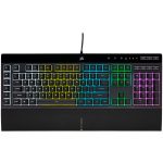 Corsair K55 Core RGB – Мембранна геймърска клавиатура с 10-зонова RGB подсветка и макро бутони Corsair K55 Core RGB е пълноразмерна мембранна клавиатура, създадена за геймъри, които търсят надеждност, комфорт и визуална персонализация на достъпна цена. Снабдена с тихи и отзивчиви Rubber Dome суичове , 10-зонова RGB подсветка , 6 програмируеми макро бутона и вградена памет , тя предлага отлична функционалност за игри, стрийминг и ежедневна употреба. Клавиатурата е устойчива на разливане (300 мл), има мултимедийни контроли , WIN Lock бутон и регулируема височина , което я прави удобна за продължителна употреба. Характерни предимства Тиха работа – идеална за споделени пространства 10-зонова RGB подсветка – ярка и персонализираща се 6 макро бутона – за игри, стрийминг или продуктивност Устойчивост на разливане – до 300 мл течност Мултимедийни контроли и WIN Lock – удобство и контрол Съвместимост с Corsair iCUE – за пълна персонализация Технически характеристики Тип клавиатура Мембранна геймърска клавиатура Суичове Rubber Dome – тихи, плавни Форм-фактор Full-size Подсветка 10-зонова RGB – 16.8 млн. цвята, персонализираща се чрез iCUE Макро бутони 6 – напълно програмируеми Мултимедийни контроли Да – отделни бутони за звук и възпроизвеждане Anti-Ghosting / Key Rollover 12-Key Selective (12KRO) Интерфейс USB 2.0 Type-A Вградена памет Да – за запазване на профили и настройки WIN Lock бутон Да – за деактивиране на Windows клавиша по време на игра Кабел Гумиран, устойчив на заплитане Защита от разливане До 300 мл – устойчивост на течности Регулируема височина Да – чрез крачета Размери 481 x 167 x 36 мм Тегло ~1.035 кг Съвместимост Windows 10/11, macOS 10.15+, USB порт, интернет за iCUE Софтуер Corsair iCUE – управление на подсветка, макроси, профили Цвят Черен