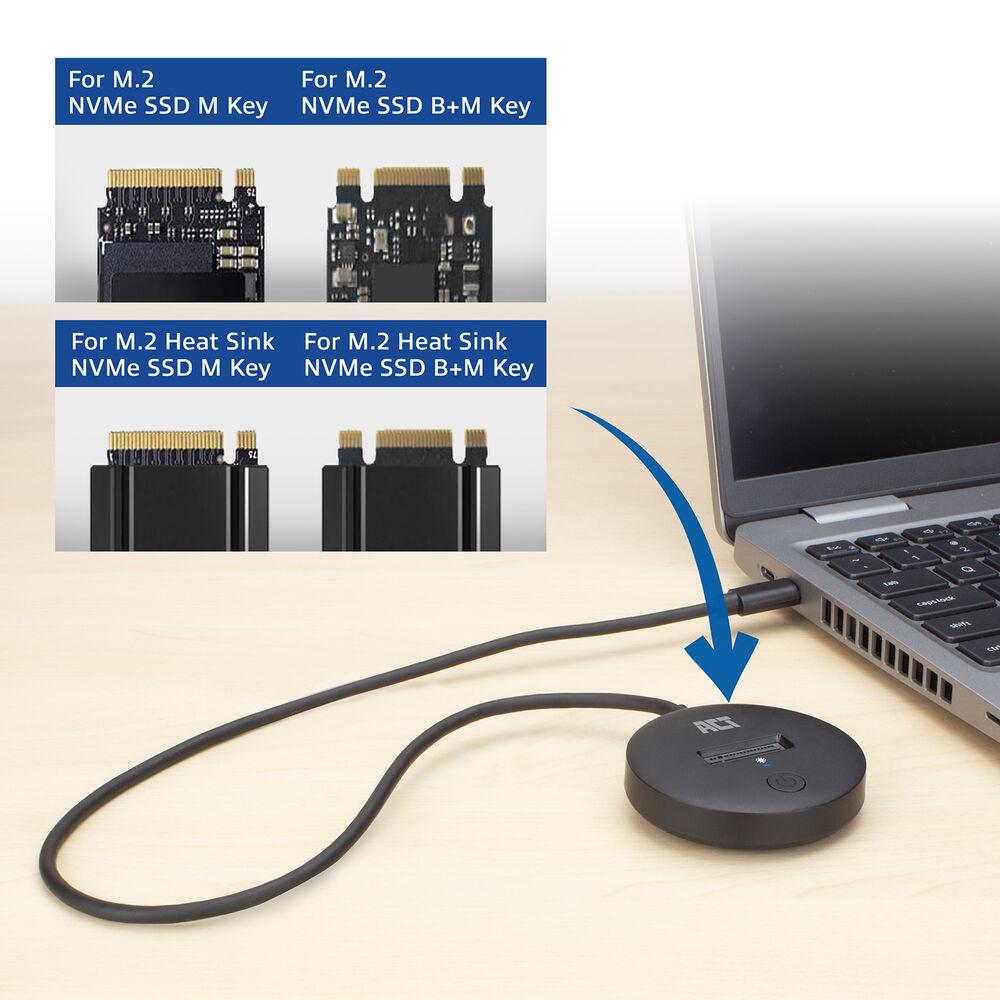 – Лесно архивирайте вашите данни към и от M.2 NVMe/PCIe SSD – Подходяща за един M.2 SSD с M ключ или B+M ключ със и без радиатор – Поддържа на USB 3.2 Gen2 10Gbps и UASP за високи скорости на трансфер – Ключ за включване/изключване и LED индикатор – USB захранване – Дължина на кабела: 50 сантиметра Подържани формати: M.2 22110, M.2 2230, M.2 2242, M.2 2260, M.2 2280 USB версия: USB 3.2 Gen 2 – SuperSpeed 10Gbit/s (USB 3.1) Трансфер на данни: 10 Gbps