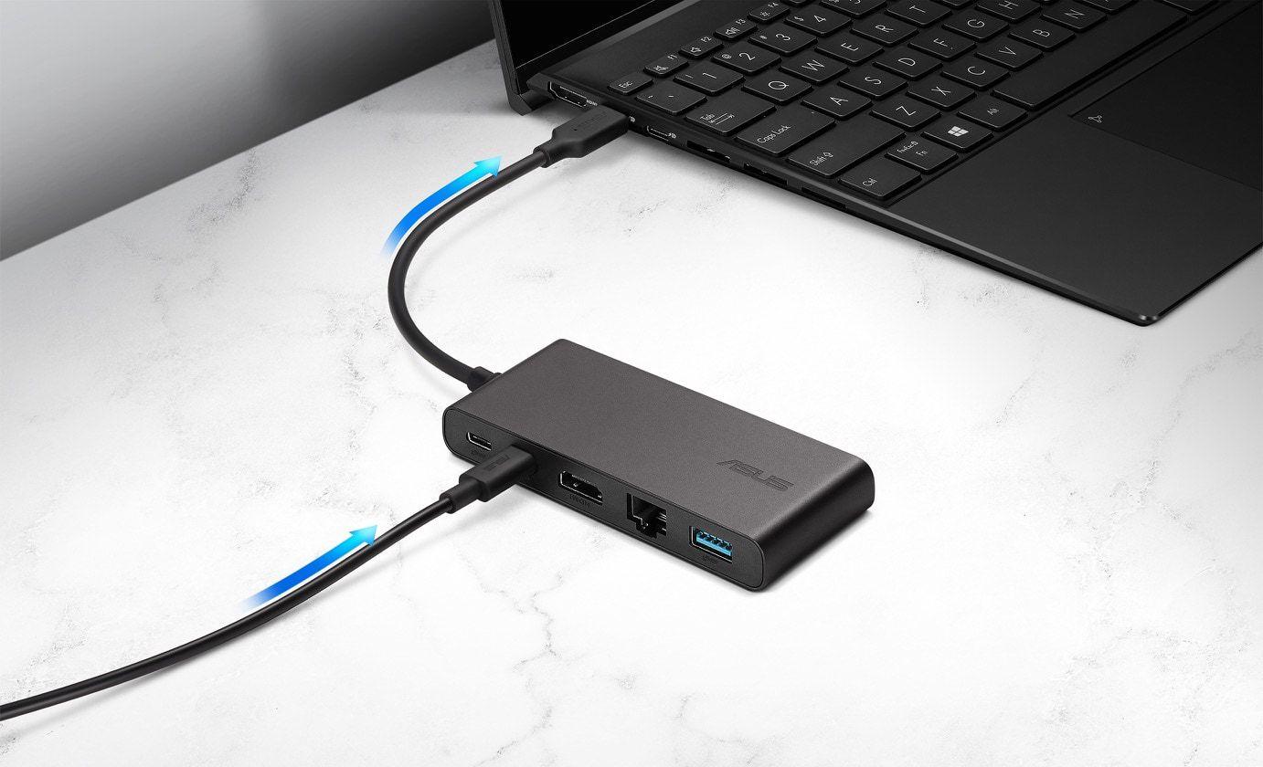 ASUS Dual 4K USB‑C Dock DC201 е компактен и стилен 5‑в‑1 докинг хъб, който предлага двоен 4K 60 Hz видео изход, бърз трансфер на данни до 10 Gbps, Gigabit Ethernet и до 100W Power Delivery. Той повишава продуктивността с гладка работа на два монитора и универсална свързаност в лек и преносим дизайн. Двоен 4K дисплей — Поддържа два 4K 60 Hz монитора чрез HDMI 2.1 и USB‑C за плавна визуализация и ефективна многозадачност. 5‑в‑1 свързаност — Включва USB‑C, USB‑A, HDMI, DisplayPort функционалност и Ethernet за гъвкаво разширяване на устройствата. Висока скорост на трансфер — USB 3.2 Gen 2 портове осигуряват до 10 Gbps за бързо прехвърляне на файлове и работа с периферия. Power Delivery до 100W — Зарежда лаптопи и мобилни устройства ефективно чрез USB‑C PD. Компактен и преносим — Лек дизайн от 98 g с 15 cm кабел, идеален за мобилни работни среди.
