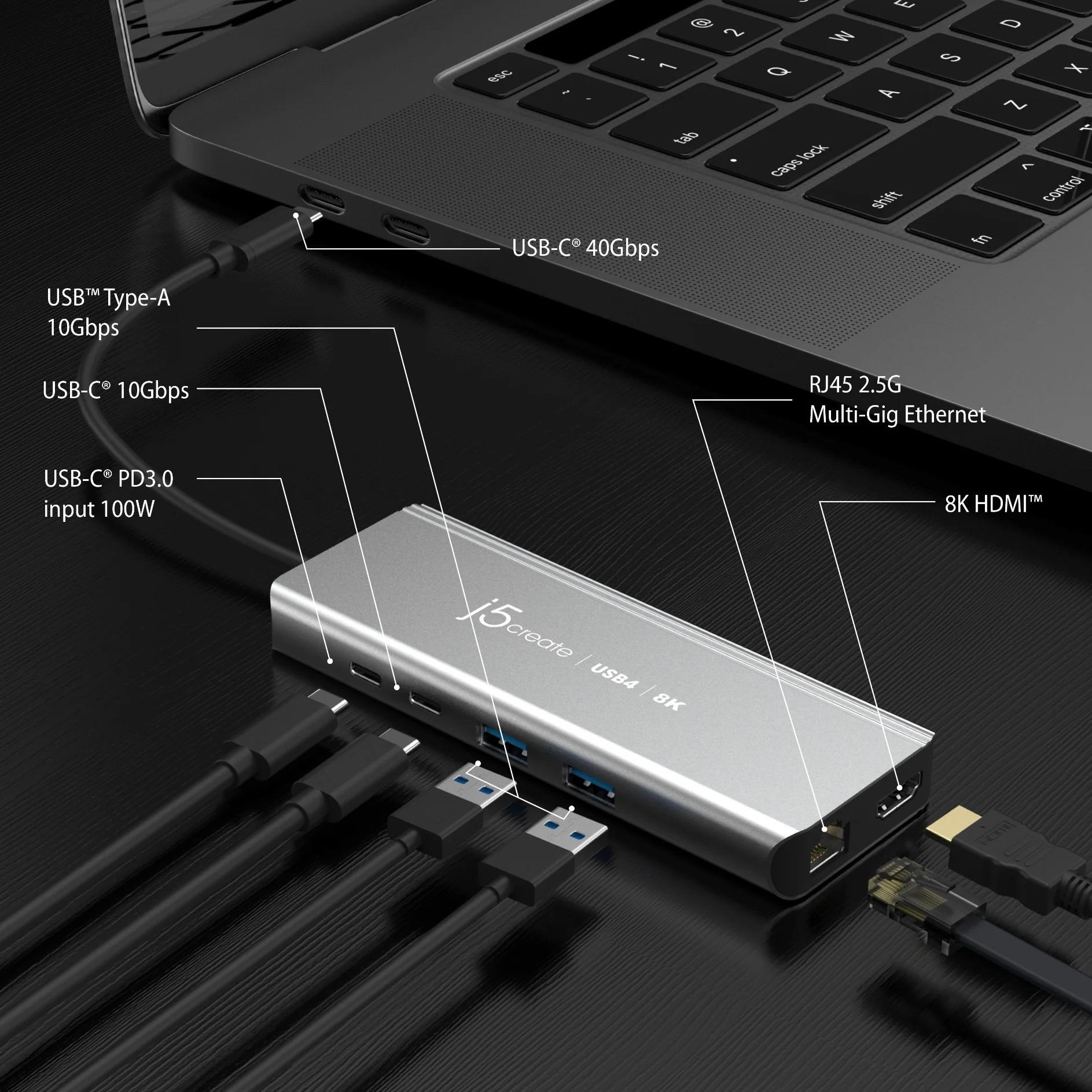 Докинг станция j5create JCD403, USB4, Multi-port хъб, Gigabit Ethernet