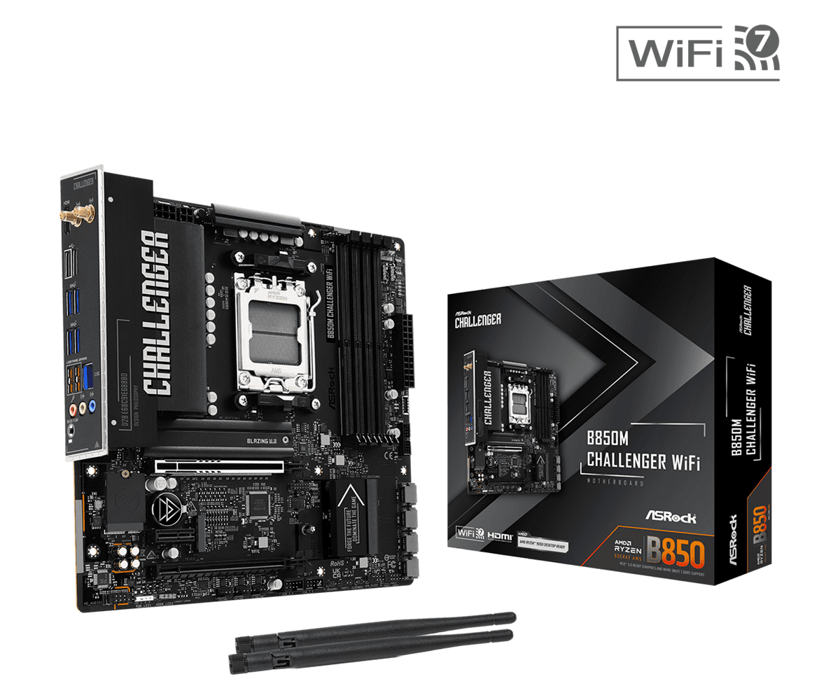 ASRock B850M Challenger WiFi предлага стабилна производителност, поддръжка на бърза DDR5 памет, PCIe Gen5 възможности и модерна свързаност. Нейният свеж бял дизайн я прави отличен избор за компактни, стилни геймърски или работни конфигурации. CPU поддръжка – Съвместима с AMD Ryzen 7000, 8000 и 9000 Series процесори на AM5 сокет. Памет – Поддържа високоскоростна DDR5 памет с 4 DIMM слота за стабилна и ефективна работа. Захранване – Здрава VRM конфигурация, осигуряваща надеждно подаване на мощност при гейминг и мултитаскинг. Разширения – Разполага с PCIe 5.0 x16 слот за видеокарти от следващо поколение и допълнителни PCIe опции. Сторидж – Оборудвана с няколко M.2 слота (вкл. PCIe Gen5) плюс SATA портове за гъвкави сторидж конфигурации. Свързаност – Включва WiFi 7 и 2.5GbE LAN за бърза и модерна мрежова комуникация. USB портове – Предлага богат набор от USB‑C и USB 3.2 портове за съвременни периферни устройства.