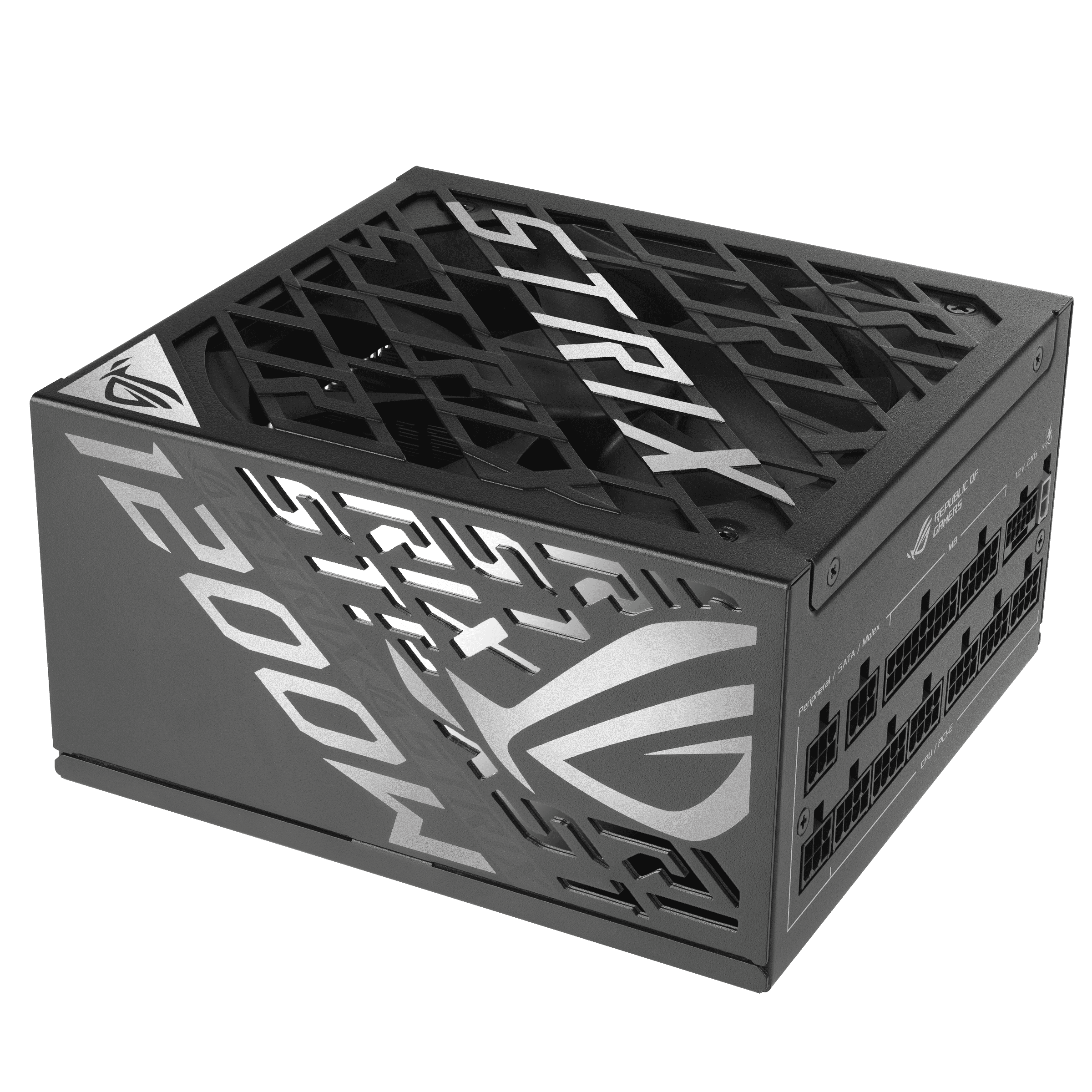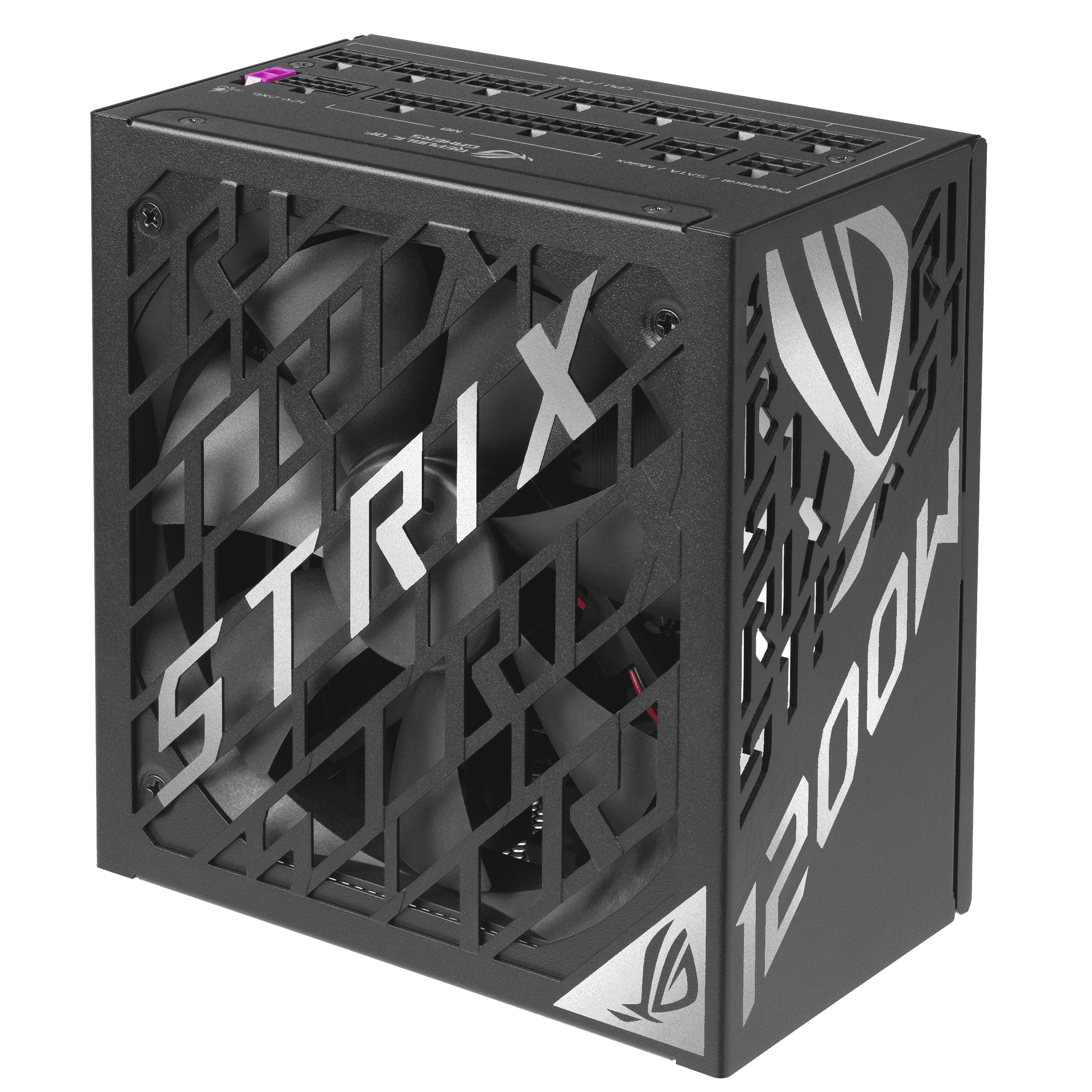 Захранващ блок ASUS ROG STRIX 1200W, 80+ Platinum PCIe 5.1, Fully Modular GaN MOSFET осигурява превъзходна енергийна ефективност с до 30% и по-организирано вътрешно оформление за по-хладна работа. „GPU-FIRST“ разпознаване на напрежението с патентован интелигентен стабилизатор на напрежението подобрява подаването на напрежение с до 45% към вашата графична карта за по-плавна игра и непоколебима производителност. Големите радиатори ROG покриват критични компоненти, осигурявайки по-ниски температури и шум от референтните дизайни. Двойните сачмени вентилаторни лагери могат да издържат до два пъти по-дълго от конструкциите на плъзгащи се лагери. 0dB технология ви позволява да се наслаждавате на леки игри в относителна тишина. ATX 3.1 съвместимост: ROG Strix Platinum е съвместим със стандарта ATX 3.1, осигурявайки подобрено регулиране на напрежението и тока. PCIe 5.1 Готов: ROG Strix Platinum разполага със собствен 12V-2×6 конектор за захранване на графична карта от следващо поколение. Lambda A Сертифициран : Сертифицирани ниски нива на шум, под 25 dB 80 PLUS Platinum: ROG Strix Platinum използва кондензатори с ниско ESR и първокласни компоненти за водеща в индустрията енергийна ефективност. 10-Години гаранция