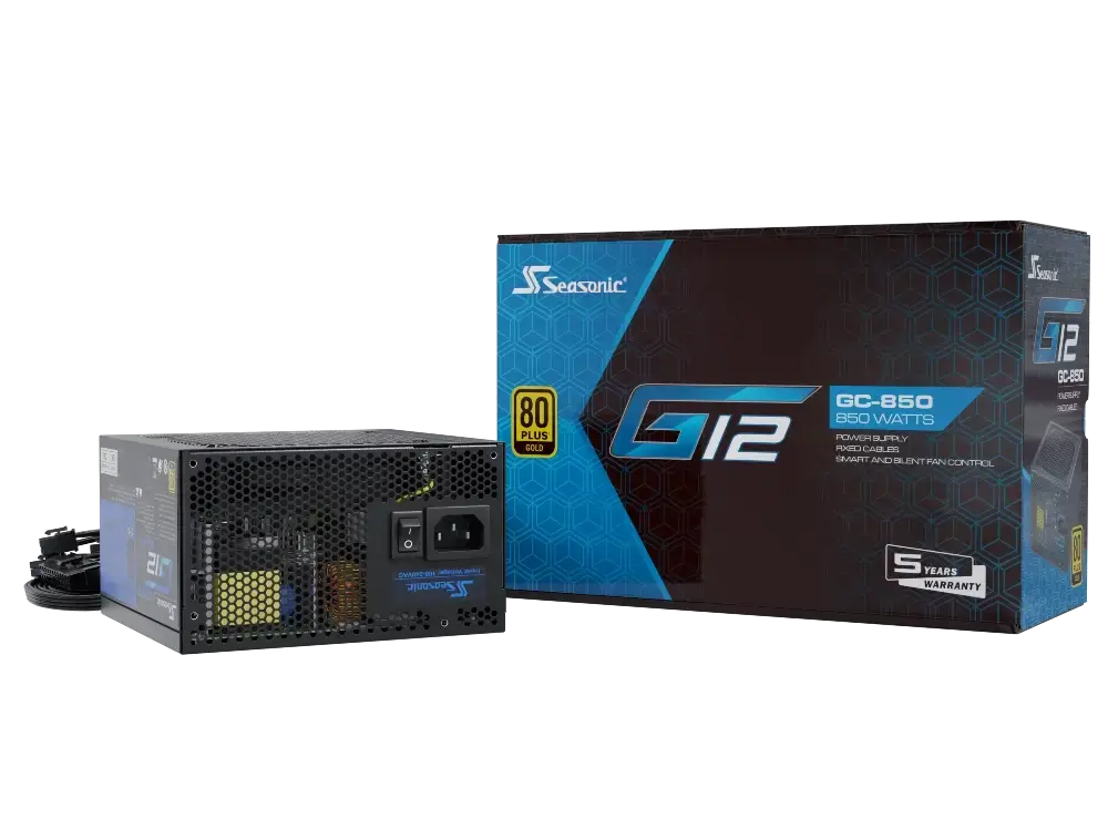 Захранващ блок Seasonic G12 GM-850 V2, 850W, 80+ GOLD Мощност: 850W Енергийна Ефективност: 90% Охлаждане: 120 mm вентилатор 5 Години Гаранция 80PLUS® GOLD