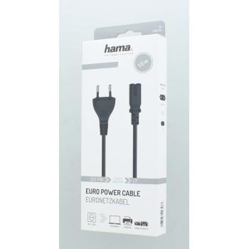 Захранващ кабел HAMA 200732, Euro-plug, 2pin(IEC C7) женско, 1.5 m, Черен