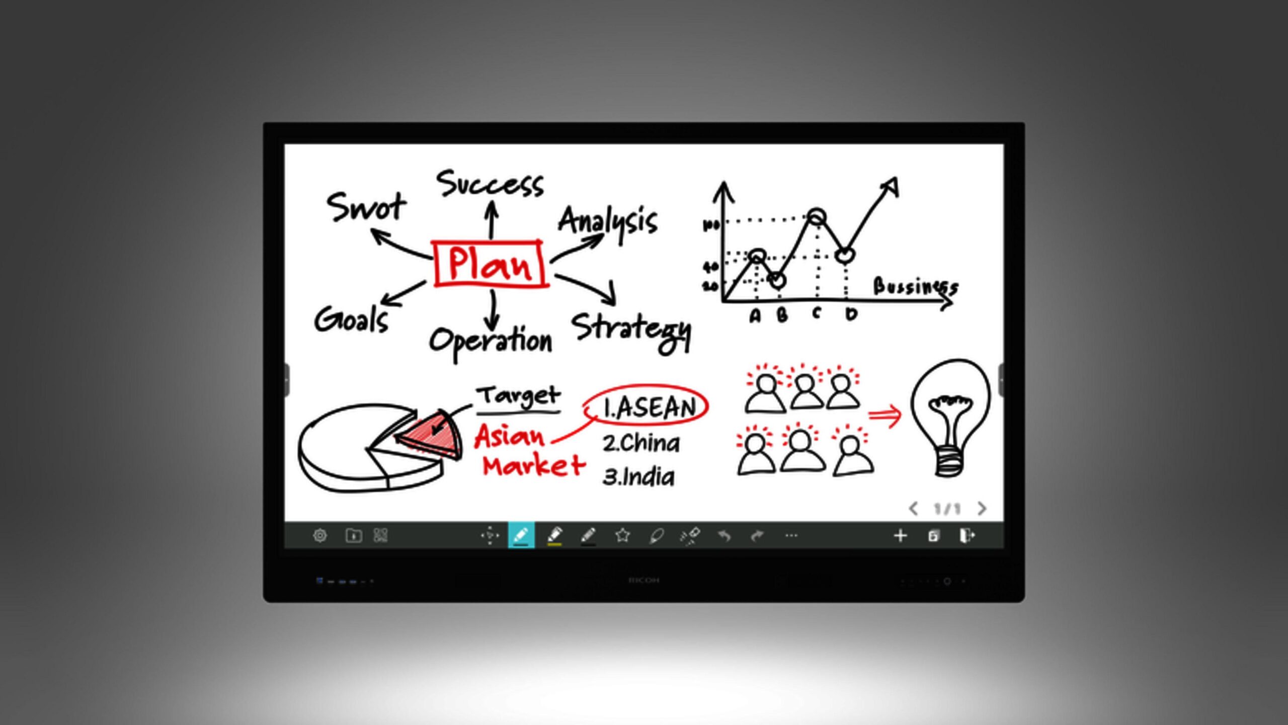 Интерактивен дисплей RICOH A6510, 65″, 3840 x 2160, HDMI, DP, Android 13, USB, Мулти-тъч, Черен
