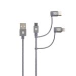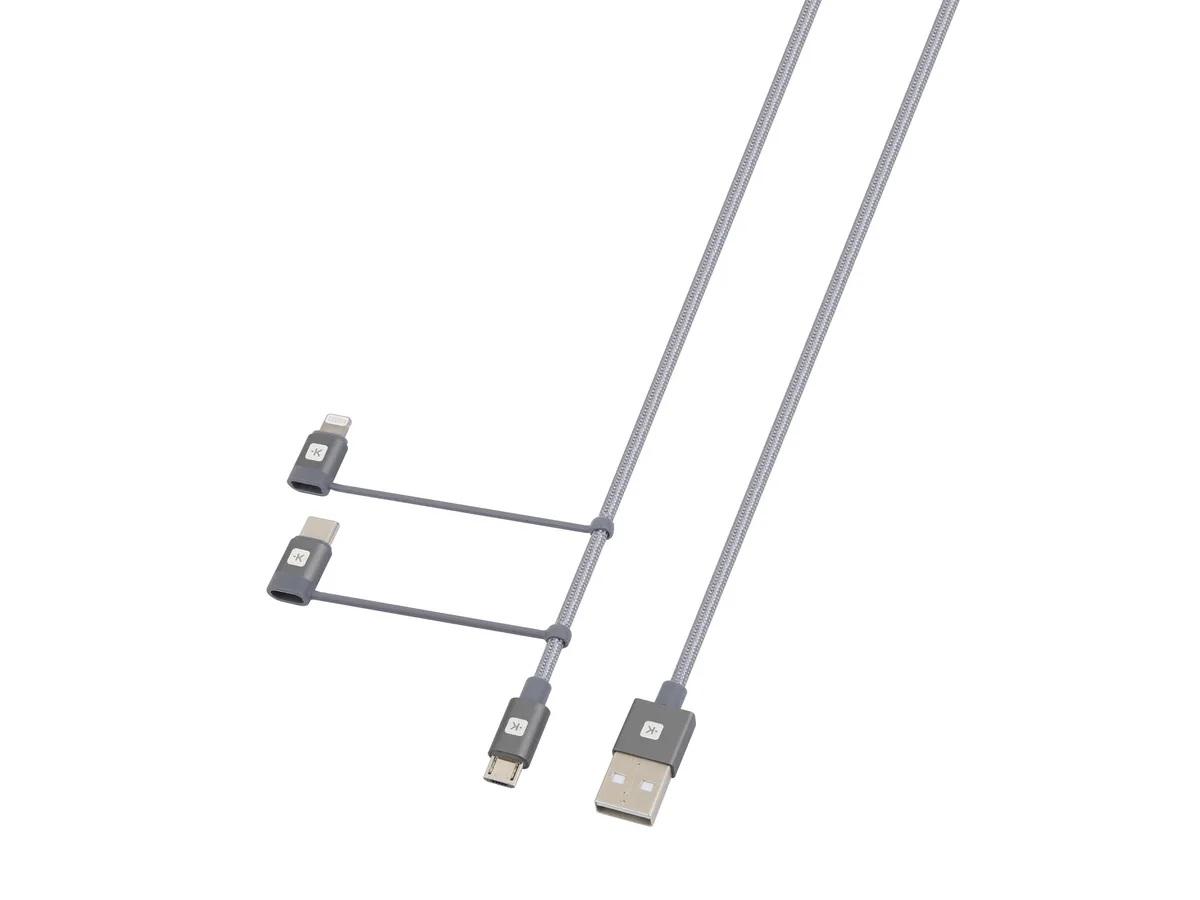Кабел Skross 3 в 1, USB-A – USB-C/ Lightning/ Micro USB , Метална оплетка, 1.2 м