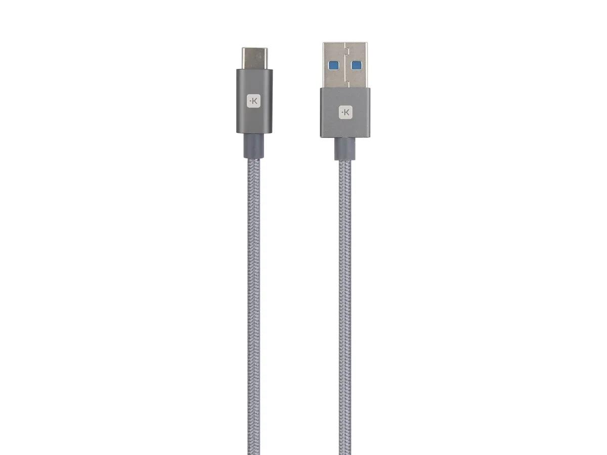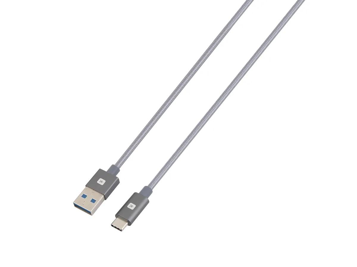 Кабел Skross, USB-A – USB-C, Метална оплетка, 1.20 м, Сив