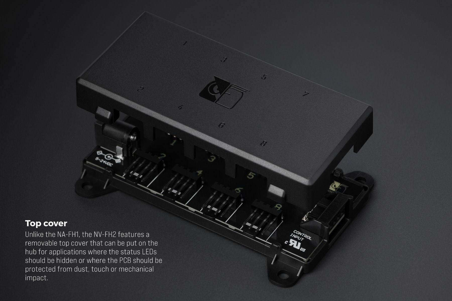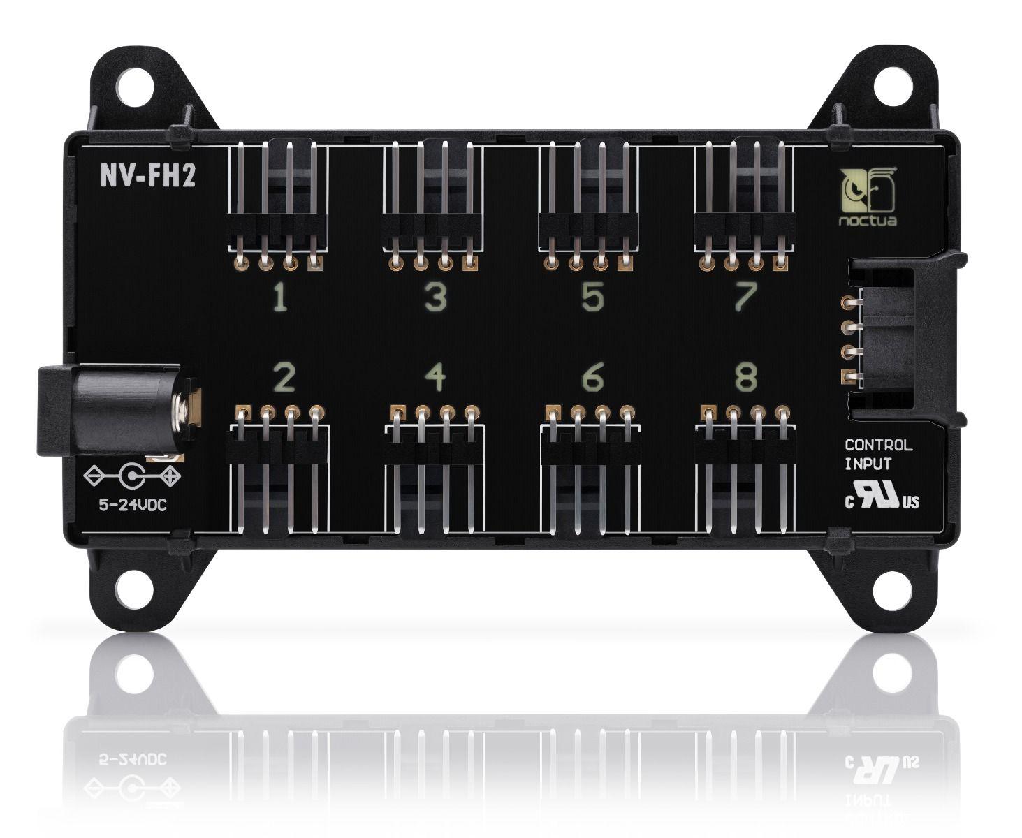 Контролер за 8 вентилатора Noctua NA-FH1, 5-12V, 3pin/4pin, Черен Поддържа вентилатори 5V, 12V и 24V Съвместим с 4-пинови PWM вентилатори и 3-пинови вентилатори Обща консумация на енергия до 60 W Поддържа до 71 вентилатора в последователна връзка Безопасно управление на мощни вентилатори Светодиоди за състоянието Свалящ се горен капак Гъвкав монтаж с магнити, винтове или кабелни връзки Идеална комбинация с опционалния контролер за вентилатори NA-FC1 Защита от свръхток, пусков ток и сертификати за безопасност