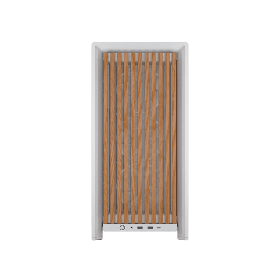 Corsair 4000D Wood RS Mid‑Tower комбинира висок въздушен поток с уникална естествена дървена визия. Поддържа мощни охлаждащи конфигурации, включва модерни RS‑функции и предлага подреден, удобен за сглобяване интериор — идеален за стилни и високопроизводителни конфигурации. Дизайн и визия – Съчетава класическия 4000D дизайн с истински дървен акцент отпред , придаващ топъл и премиум вид. Охлаждане – Проектиран за висок въздушен поток с mesh преден панел и поддръжка на множество вентилаторни и радиаторни конфигурации. RS‑серия характеристики – Част от Corsair RS серията с подобрени въздушни пътища и модерно вътрешно оформление. Пространство за хардуер – Просторен интериор, подходящ за големи видеокарти и висок клас компоненти. Лесно сглобяване – Канали за кабели, точки за закрепване и чисто вътрешно оформление за по‑удобен монтаж.