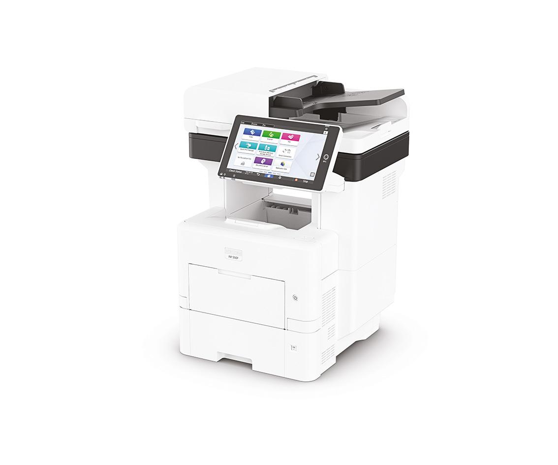 RICOH IM 550F — мощно и компактно монохромно мултифункционално устройство, създадено за натоваренa работа в офиса. Принтера се отличава с висока производителност/ 55 стр/мин/,бързо първо копие/ до 2.4сек/, 10.1“ сензорен панел, вградени функции за защита, детектор при неправилно подаване на документи при сканиране, със стартов тонер за 10000 копия, дълготраен барабан за 500000 копия Тип: Монохромно мултифункционално устройство (копир, принтер, скенер, факс) Формат: A4, A5, A6, B5, B6 10. 1“ Интелегентен сензорен панел Скорост на печат: До 55 страници в минута Време за отпечатване на първо копие: 2.4 секунди Време за загряване: 25.4 секунди Резолюция: 1200 x 1200 dpi за изключително ясни документи Процесор: Intel® Apollo Lake 1.3 GHz Памет: 2 GB RAM + 320 GB HDD Входяща тава: 600 стр/ макс. 2600 стр/ Изходяща тава: 500 стр Тегло на хартия: Trays (64 – 120 g ̸ m²), Bypass (60 – 220 g ̸ m²), Duplex (64 – 120 g ̸ m²) Принтер Език на печат: PCL5e, PCL6(XL), PostScript 3 (emulation), PDF direct (emulation) Резолюция: 1200 x 1200 dpi Интерфейс(стандартно): Ethernet 10 base-T⁄100 base-TX⁄1000 base-T, USB Host Type miniB, Bluetooth, USB Host I/F, USB Device 2.0, SD slot, NFC tag/опция WiFi/ ОС: Windows® 10, Windows® Server 2012, Windows® Server 2012R2, Windows® Server 2022, Macintosh OS X v10 or later Linux environment Копир: до 999 копия; Зуум: 25 до 400-%; Резолюция: 600 x 600 dpi; Мащабиране:50-200% Скенер Скорост на сканиране: черно/бяло 60 ipm (simplex)/100 ipm (duplex) цветно: 40 ipm (simplex)/62 ipm (duplex) Резолюция: 1200 dpi SPDF: за 100 стр. Сканира до: E-mail, Folder, USB, SD Card, E-mail, Folder, USB Факс: Съвместимост: ITU-T (CCITT) G3 Резолюция: 8×7.7 line̸ mm, 200×200 dpi Консумация: работа – 1.5кW Режим на очакване – 0.92 W ТЕС: 0.82 kWh⁄w Стартов тонер: 10000 стр Консуматив: IM 600 за 25500 стр Опция: WiFi, картов четец, финишър, тава /до 2600 листа/