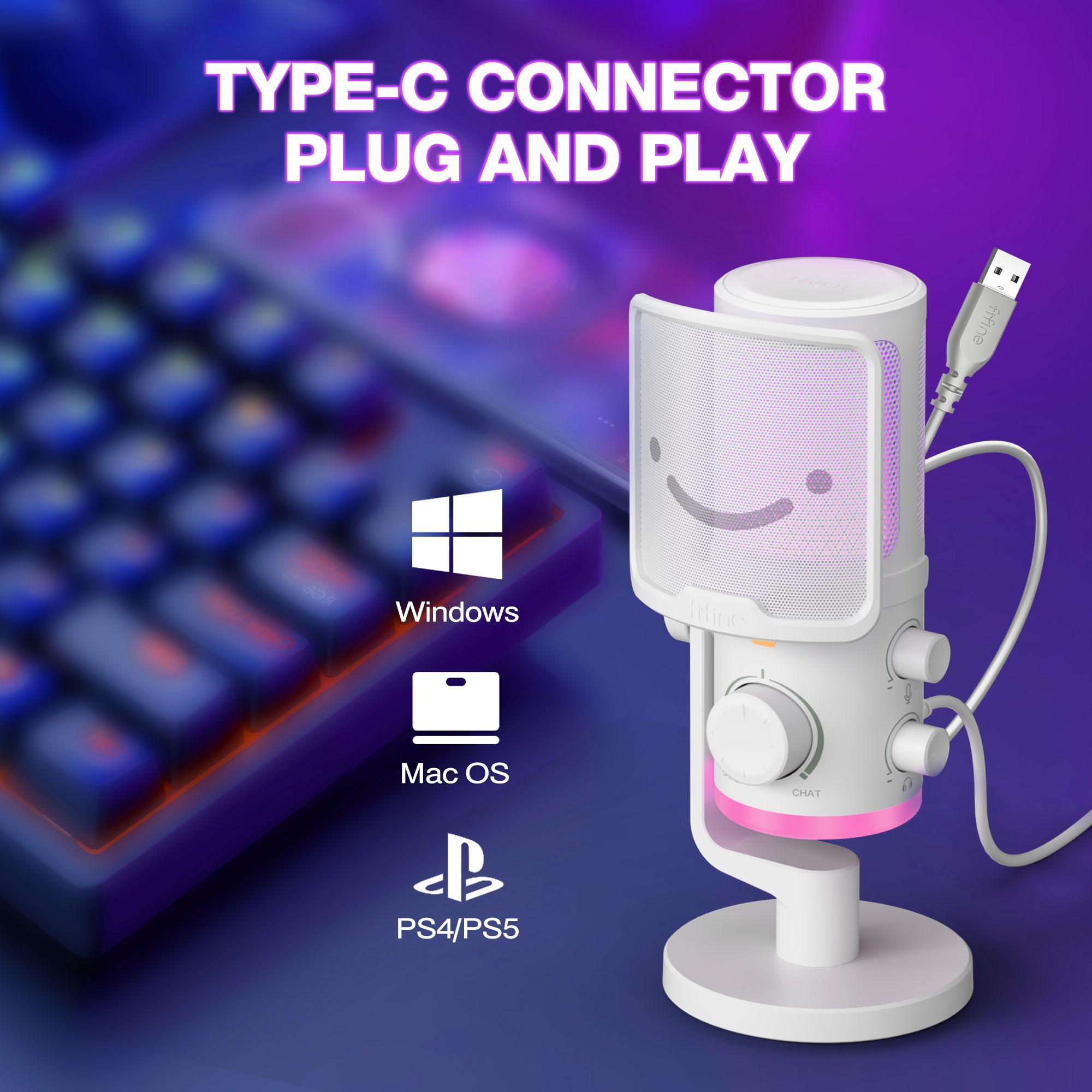 FIFINE AMPLIGAME AM6 – Кондензаторен USB-C микрофон с RGB осветление Прецизен звук и потапящ гейминг контрол Студиен звук с високо качество : Микрофонът FIFINE AM6 е създаден да осигури аудио с професионално качество, правейки всяка команда, възглас или разговор кристално ясен. Подобрява комуникацията по време на игра, като гарантира, че гласът ви се откроява във всеки момент. Иновативен контрол на баланса между игра и чат : Уникалната функция Game/Chat Balance ви позволява да регулирате баланса между звука от играта и гласа за оптимално потапяне. Тази настройка подобрява както звука от микрофона, така и функционалността на слушалките, осигурявайки ненадминато гейминг изживяване. Заглушаване с мониторинг на собствения глас (sidetone) : С удобен, чувствителен на допир бутон за заглушаване можете мигновено да изключите микрофона. Функцията sidetone ви позволява да чувате собствения си глас през слушалките, гарантирайки перфектни нива на звука както за вас, така и за слушателите ви. Разширено шумопотискане : Функцията за намаляване на шума минимизира фоновите звуци, позволявайки гласът ви да се чува ясно и без разсейване. Играйте без прекъсвания, като запазите фокуса върху най-важното – вашите команди. USB кондензаторен микрофон с регулируема чувствителност : За разлика от много USB микрофони, AM6 улавя прецизни вокални детайли, като контролира шума и предотвратява изкривяване на звука. Регулирайте нивото на входния сигнал според предпочитанията си за балансирано и комфортно изживяване. Персонализиращо се RGB осветление : Добавете стил към вашата конфигурация с лесно регулируемо RGB осветление. С четири динамични режима и шест цветови схеми, достъпни чрез специален бутон, AM6 се адаптира към всеки стил – без нужда от допълнителен софтуер. Мигновено и безшумно заглушаване : С едно докосване на горния бутон микрофонът се заглушава незабавно – бърз и дискретен начин да запазите фокуса си по време на неочаквани ситуации в играта. Технически характеристики : Тип: Кондензаторен Полярен модел: Кардиоиден Захранване: 5V Честотен обхват: 70Hz–20KHz Чувствителност: -42±3dB Съотношение сигнал/шум: ≥75dBA Максимално SPL: 102dB Изход: USB Type-C Конектор: 3.5 мм жак за слушалки