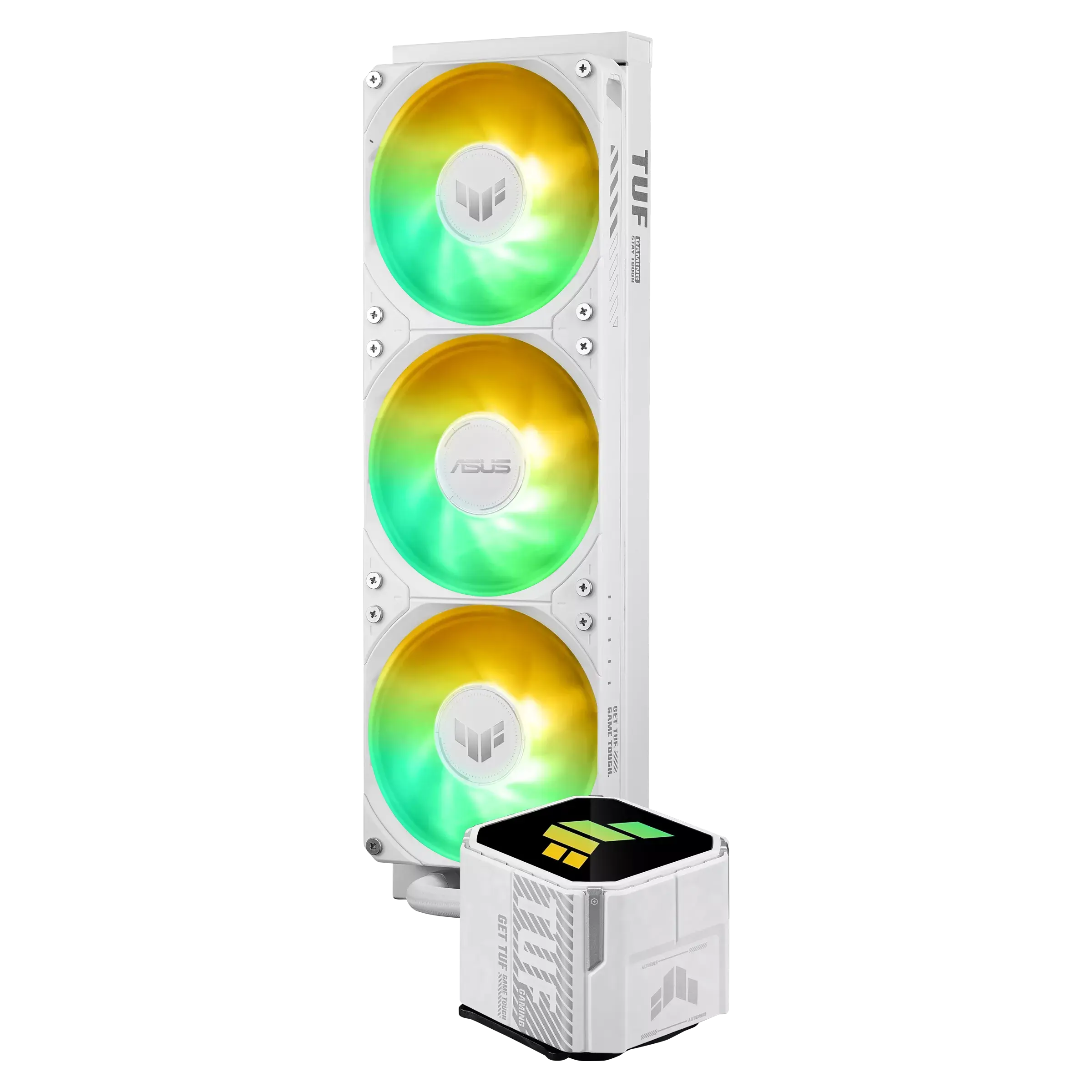 TUF Gaming LC III 360 ARGB е AIO охладител за процесор с предварително инсталирани и интегрирани тройни вентилатори, проектирани за висок въздушен поток и статично налягане. Ефективната помпа гарантира, че процесорът поддържа оптимални работни температури. По-висок въздушен поток и статично налягане осигуряват значително подобрение в производителността спрямо серията TUF Gaming LC II Предварително инсталираните интегрирани вентилатори улесняват монтажа, като един кабел поддържа както захранването, така и осветлението Помпата е подобрена с трифазен, шест-слотов, четириполюсен дизайн, който осигурява до два пъти по-дълъг живот и до 30% по-висока ефективност, като същевременно намалява шума Стилово съобразен с TUF Gaming дънните платки, за да бъде централна част от твоята конфигурация Подсилени, обвити маркучи с дължина 400 мм за по-голяма издръжливост и съвместимост с различни кутии Поддръжка на сокети Intel LGA 1851, 1700, 1200 и AMD AM5 и AM4