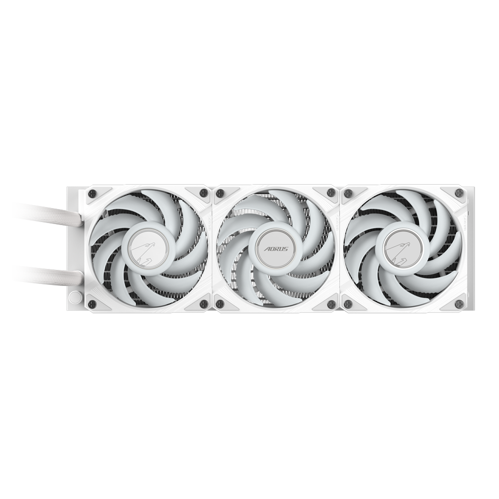 Охладител за процесор Gigabyte AORUS WATERFORCE II 360 ICE Вентилатор EZ-Chain:Лесен за монтаж вентилатор с плъзгащ се блокиращ механизъм и DAISY-CHAIN. Въртящ се на 330 градуса воден блок. Новият дизайн на лопатките на вентилатора увеличава както въздушния поток, така и налягането, като същевременно намалява шума. Осветлението на вентилатора ARGB може да се синхронизира с други устройства. Универсален дизайн за управление на оборотите на вентилатора и помпата, съвместим с всички марки дънни платки.