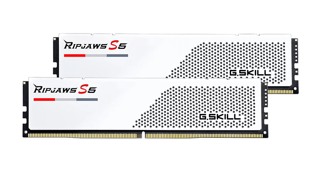F5-6000J3040G32GA2-RS5W Ripjaws S5 DDR5-6000 CL30-40-40-96 1.40V 64GB (2x32GB) Intel XMP Ripjaws S5 е производителна DDR5 DRAM серия памет, направена с ръчно проверени интегрални схеми на паметта, преминали строги тестове за валидиране на G.SKILL. Всеки комплект памет Ripjaws S5 постига идеален баланс между производителност, съвместимост и стабилност и се предлага в матово черни или матово бели алуминиеви разпределители.