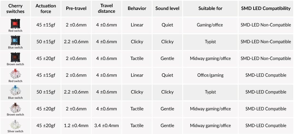 Суичове за механична клавиатура Keychron Cherry MX, Blue, RGB, Switch Set 35 броя