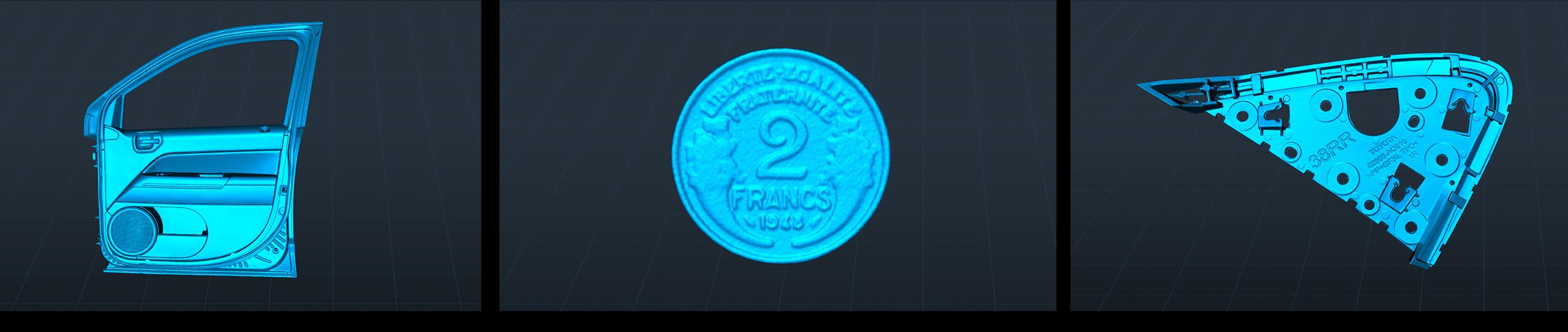 3D скенер Creality CR-Scan Raptor Creality CR-Scan Raptor е високопрецизен портативен 3D скенер, разработен за детайлно сканиране на малки, средни и по-големи обекти. Моделът комбинира син лазер и NIR инфрачервена структурирана светлина , което позволява гъвкава работа според типа обект и необходимата точност. Производителят посочва точност до 0.02 mm , което прави устройството подходящо за инженерни приложения, реверсивно проектиране, дигитализация на детайли и подготовка за 3D печат. CR-Scan Raptor работи в два основни режима. Blue Light режимът използва 7 сини паралелни лазерни линии и е предназначен за сканиране, при което се търсят максимално висока детайлност и прецизност. NIR режимът е подходящ за по-големи обекти и позволява работа и без маркери при определени сценарии, включително при сканиране на лица, човешко тяло, скулптури и други обекти с по-големи размери. Скенерът покрива широк диапазон на обектите за сканиране – от 5 x 5 x 5 mm до 2000 x 2000 x 2000 mm , което го прави универсално решение както за миниатюрни детайли, така и за значително по-големи елементи. Работното разстояние е 150 – 400 mm в син лазерен режим и 170 – 1200 mm в NIR режим. Creality CR-Scan Raptor разполага с 2.3 MP камера с висока резолюция , RGB камера за пълноцветно сканиране и 12 бели LED светлини , които подпомагат заснемането на текстури дори в по-слабо осветена среда. Според Creality устройството има ниска зависимост от матиращ спрей и може да сканира много черни и метални обекти директно. Моделът е компактен и удобен за работа в различни среди. Поддържа OBJ, STL и PLY формати, свързва се чрез Type-C / USB 3.0 , а корпусът е с размери 215 x 50 x 74 mm и тегло 372 g . Захранването е 12V / 2A .