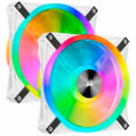 Corsair QL Series, WHITE QL140 RGB, 140mm RGB LED Fan, Dual Pack with Lighting Node CORE