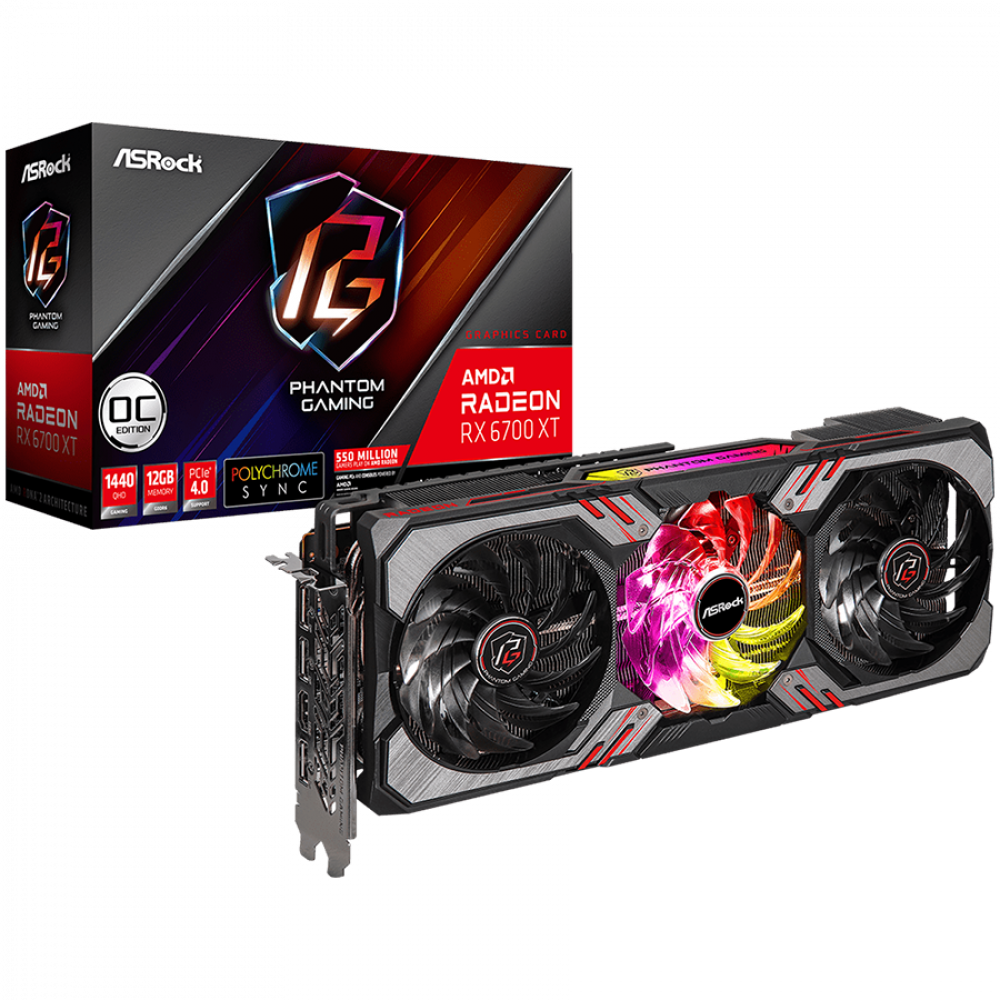 Asrock AMD Radeon RX6700XT Phantom Gaming D 12GB OC, GDDR6 192-bit, 1x HDMI 2.1 VRR, 3x DP 1.4, power 2×8 pin, recomended PSU 700W