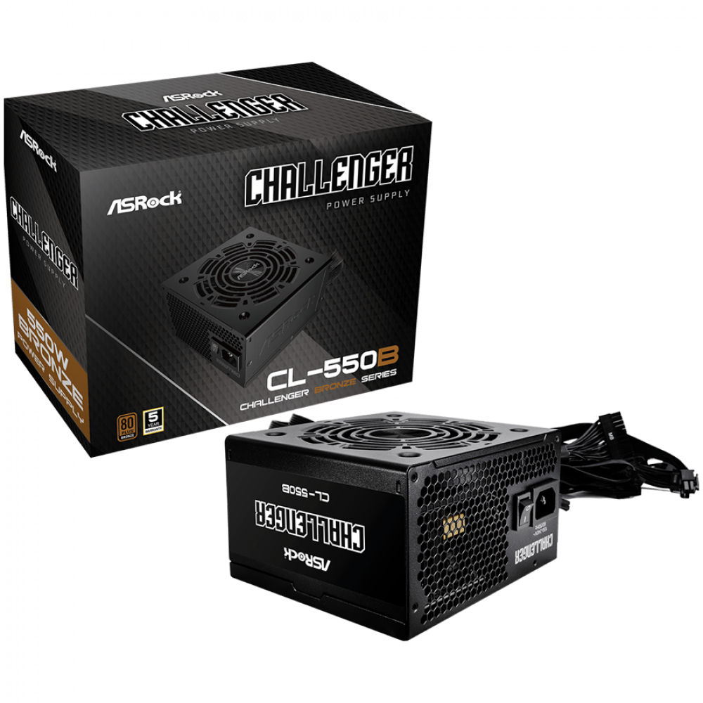 Asrock CL-550B, 550W, 80 Plus BRONZE, Non Modular PSU, 1x EPS 12V CPU(4+4pin), 2x PCIe (6+2pin), 2x 4-pin connectors, 4x SATA, OCP, SCP, OVP, UVP, OTP, OPP protections, 120 mm Fan, ATX 2.52, 5Y warranty