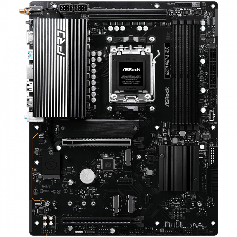 ASROCK Main board AMD B850 AM5, PCIe 5×16, 4x DDR5, 4x M.2, 2x SATA3 6Gb/s, 2.5Gb LAN, 802.11axe, 7.1 Ch audio, ATX