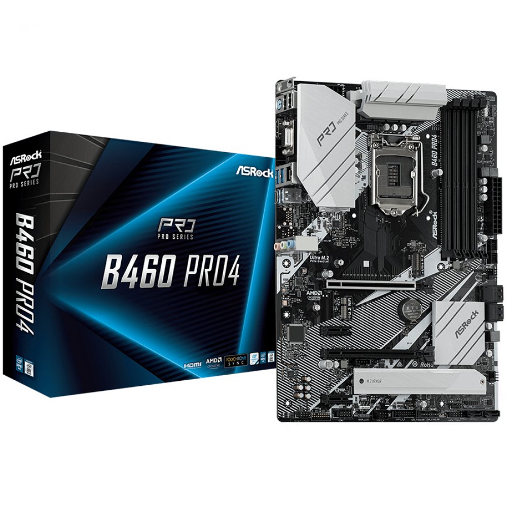 ASROCK Main Board Desktop B460 PRO4 (S1200, 4xDDR4,2xPCIe x16,2xPCI Ex1, 6 SATA3 ,1x Ultra M.2, GLAN,VGA,DP,HDMI,USB 3.1 ) ATX retail