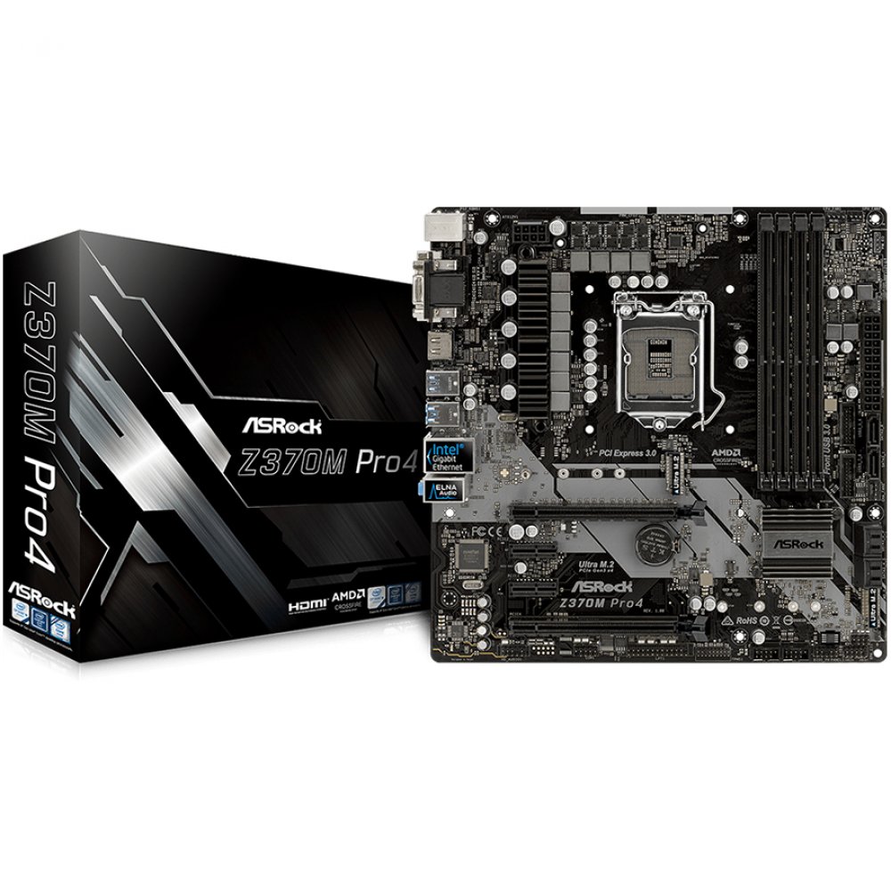 ASROCK Main Board Desktop Z370 (S1151, 4xDDR4,2xPCIe x16,2xPCI Ex1, 6 SATA3, 1xUltra M.2 ,GLAN,VGA, DVI, HDMI, USB 3.1 ) mATX retail