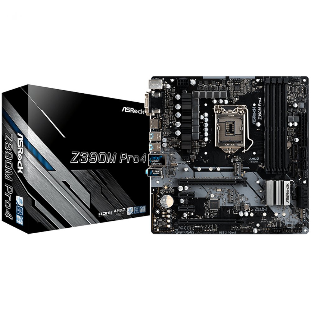 ASROCK Main Board Desktop Z390 (S1151, 4xDDR4,2xPCIe x16,2xPCI Ex1, 6 SATA3, 2xUltra M.2 ,GLAN,VGA, DVI, HDMI, COM Header,6 USB 3.1 ) mATX retail