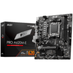 MSI PRO A620M-E, mATX, Socket AM5, Dual Channel DDR5 6800+MHz, 1x PCIe x16 slot, 1x M.2 slot, 1x HDMI, 1x VGA, 2x USB 3.2 Gen 1, 4x USB 2.0, 7.1 HD Audio, Realtek RTL8111H Gigabit LAN, 3Y