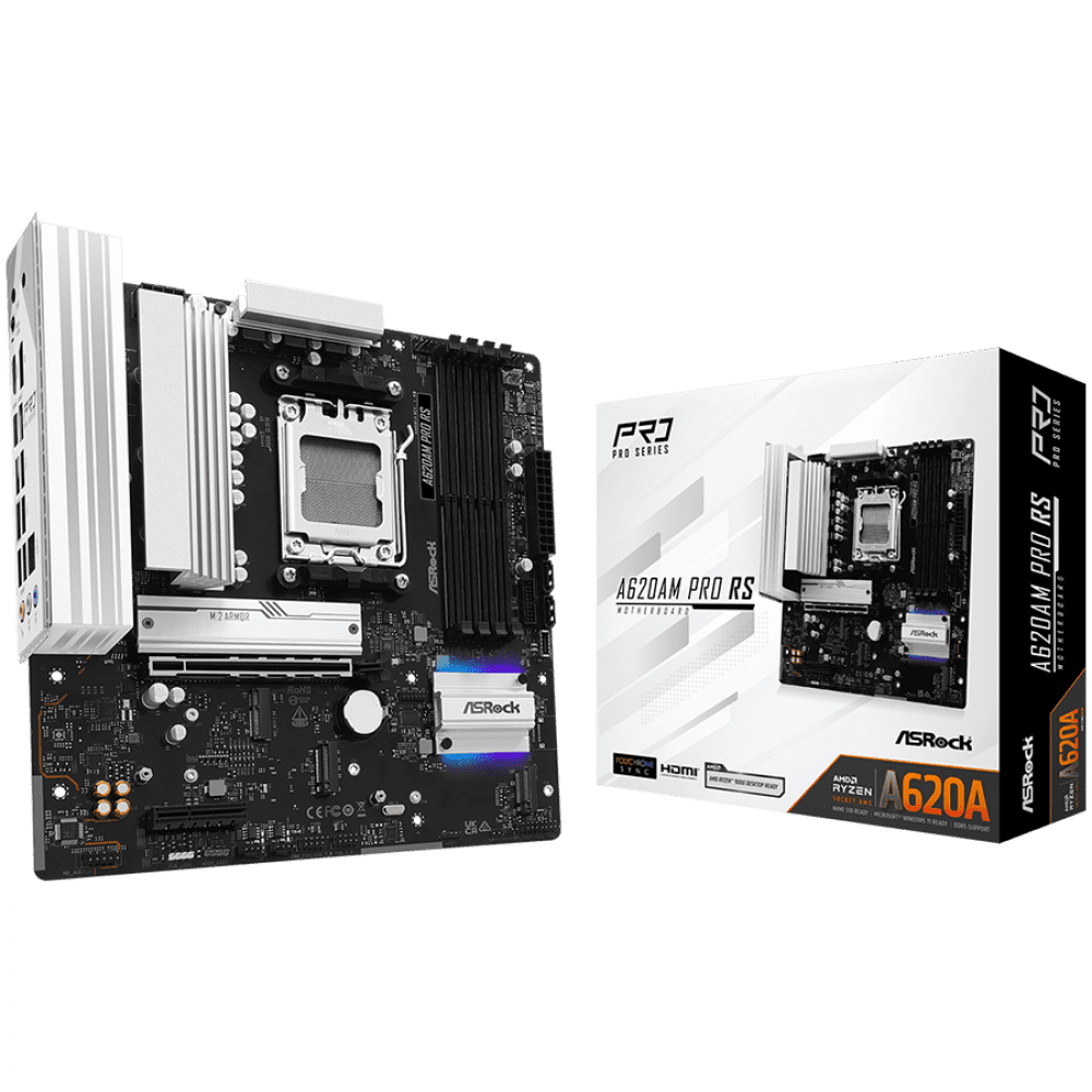 ASROCK MB Desktop A620AM Pro RS, AM5, 4x DDR5, 1x PCIe 4.0 x16, 1x PCIe 3.0 x16, 2x Hyper M.2(PCIe Gen4x4), 1x Ultra m.2, 2x SATA3 6.0 Gb/s, 1x HDMI, 1x DP, 1x Gbit LAN, 5x USB 3.0, 2x USB-C, 6x USB 2.0, Micro ATX