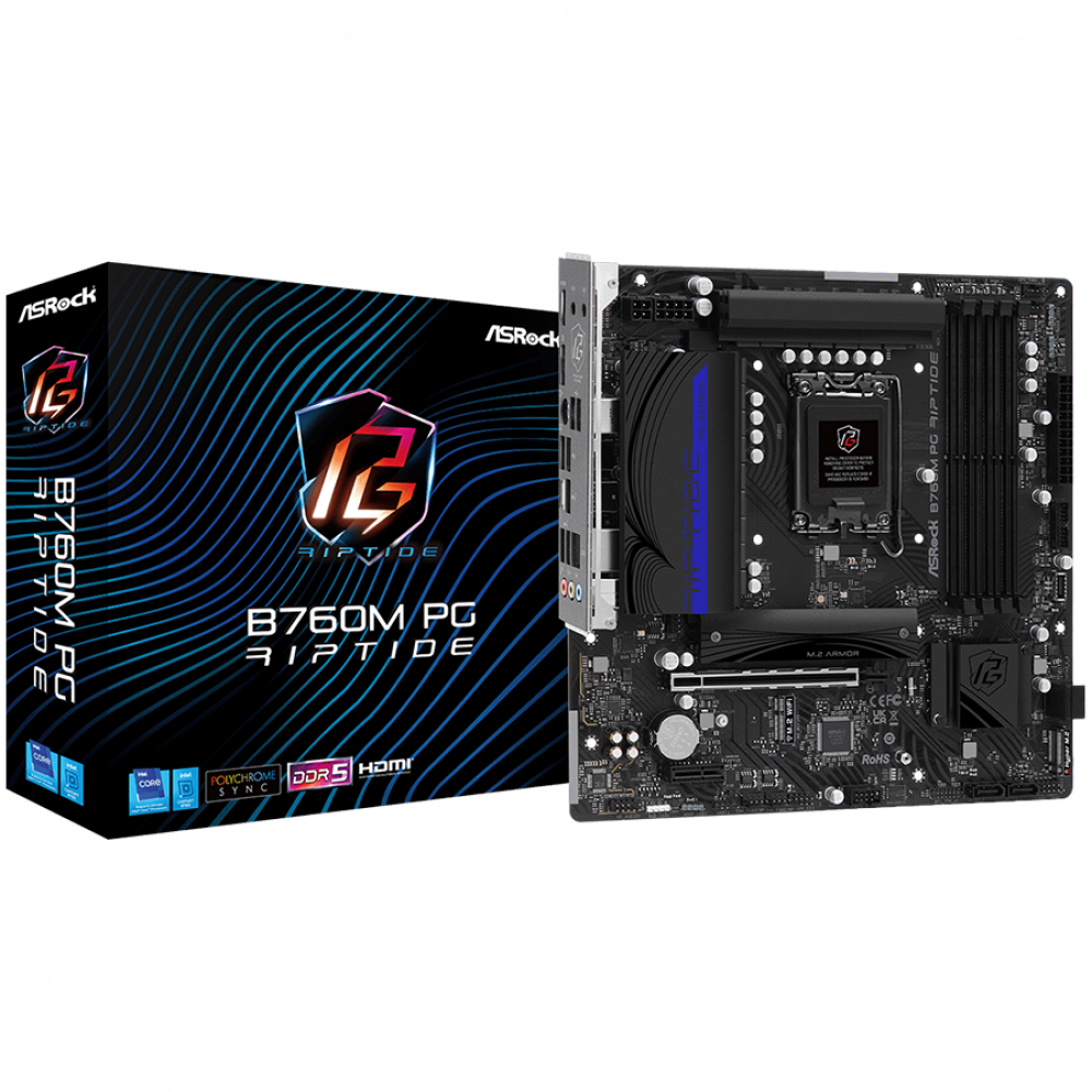 ASROCK MB Desktop B760M PG RIPTIDE (S1700, 4x DDR5, 1x PCIe 4.0 x16, 1x PCIe 4.0 x1, 1x M.2 Key E for Wi-Fi, 1x M.2 Hyper Gen4x4, 4x SATA3, 2x USB-C, 5x USB 3.2, 6x USB 2.0, 1xRJ-45 2.5 Gbit, 1x HDMI, 1x DP, mATX