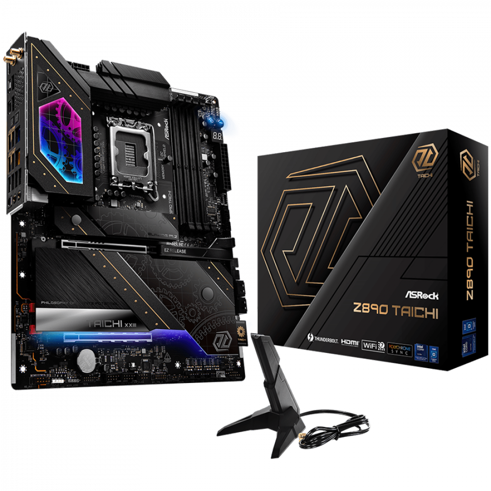 октомври 1, 2025ASROCK MB Desktop Z890 Taichi, S1851, 4x DDR5, 1x PCIe 5.0 x16, 1x PCIe 4.0 x4, 1x Blazing M.2, 5x Hyper M.2, 4x SATA3, 3x USB-C, 12x USB 3.2, 6x USB 2.0, 2x RJ-45 2.5GB / 5GB Lan, 802.11ax Wi-Fi 7 + Bluetooth 5.4, 1x SPDIF, ATX