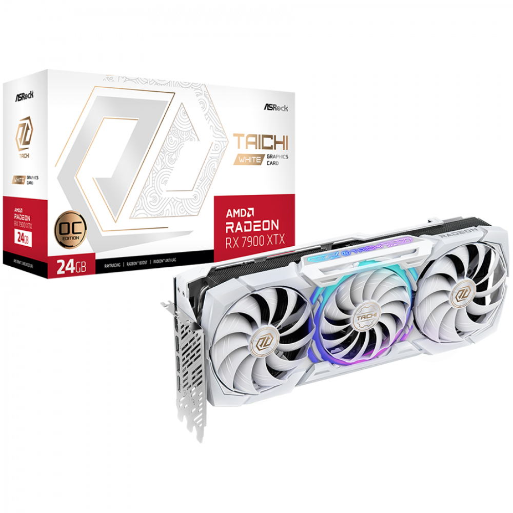 октомври 1, 2025ASROCK Video Card AMD Radeon RX7900XTX Taichi White 24GB OC, GDDR6, 384-bit, 3 x DisplayPort 2.1, 1 x HDMI 2.1, 3 x 8-pin Power Connectors, Recommended PSU 1000W