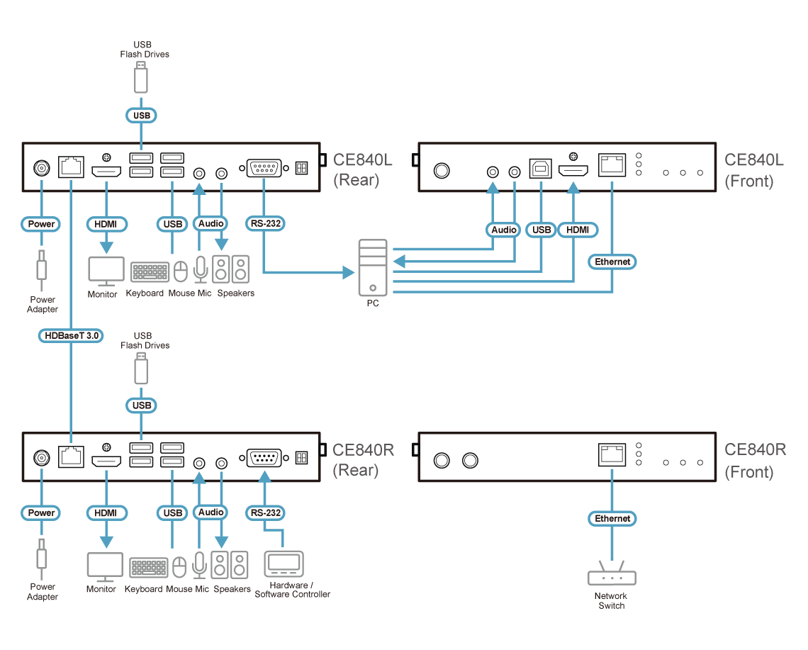 ATEN KVM Extender CE840A, USB true 4K HDMI