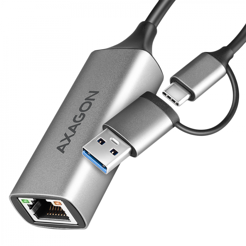 AXAGON ADE-TXCA USB-C USB3.2 Gen 1 + USB-A reduction- Gigabit Ethernet 10/100/1000 Adapter, metal, titan grey