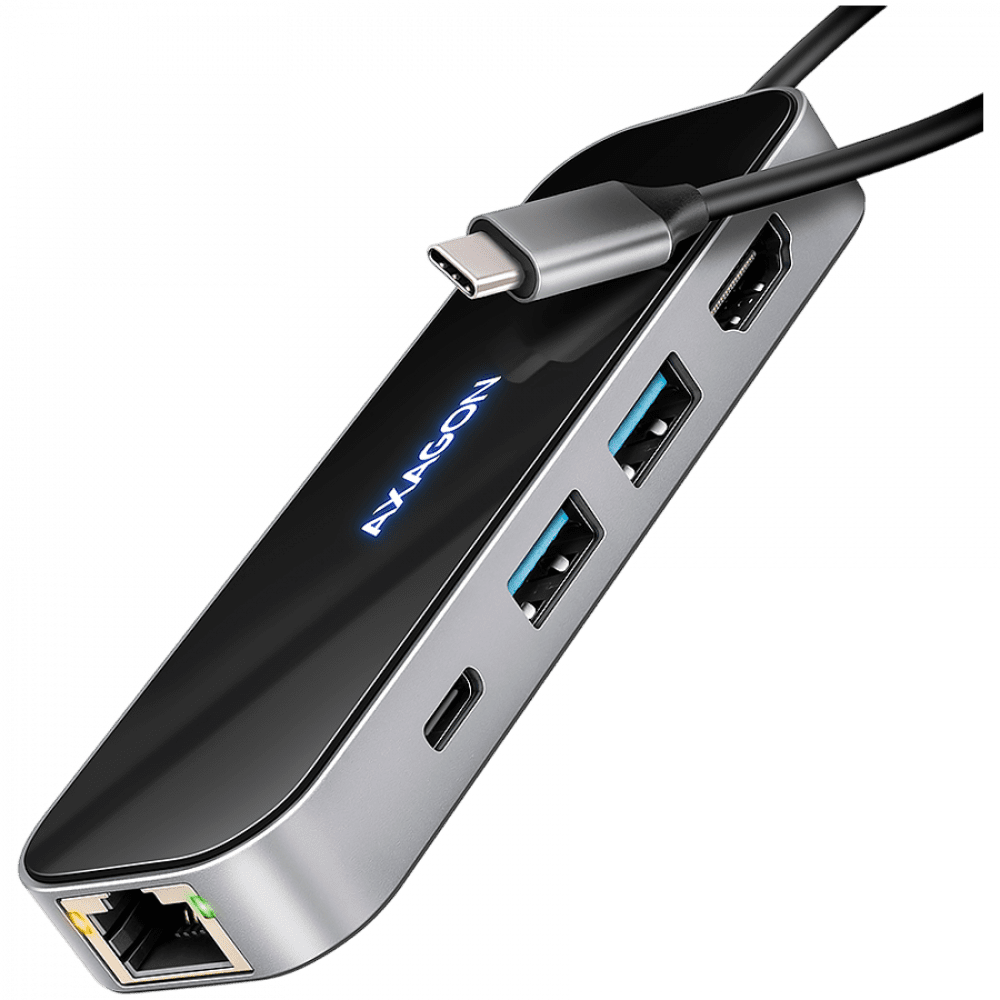 AXAGON HMC-6GLN 2x USB-A 5Gbps, 1x USB-C 5Gbps, 4K/60Hz HDMI, RJ-45, USB 3.2 Gen 1 hub, PD 100W, 20cm USB-C cable