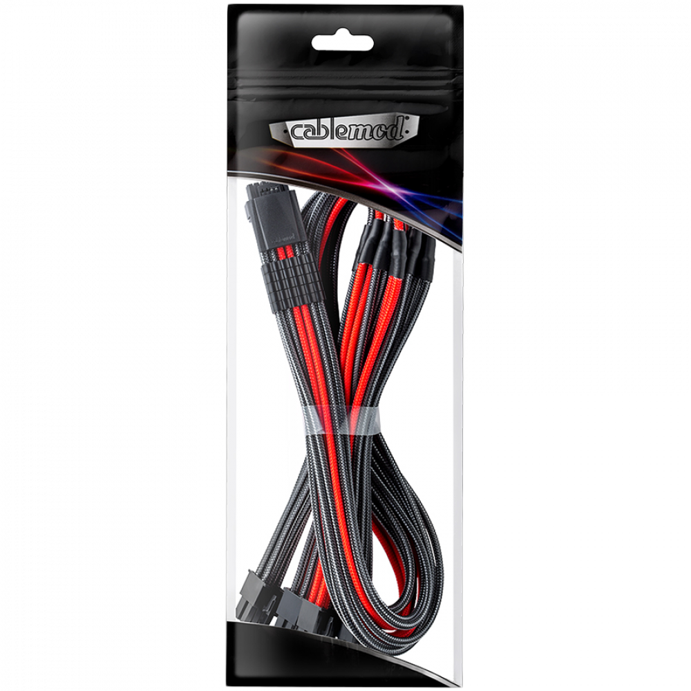 CableMod E-Series Pro ModMesh Sleeved 12VHPWR PCI-e Cable for Super Flower Leadex Platinum / Platinum SE / Titanium / V Gold Pro / V Platinum Pro, EVGA G7 / G6 / G5 / G3 / G2 / P2 / T2 (Carbon + Red, Nvidia 4000 series, 16-pin to Quad 8-pin, 60cm)