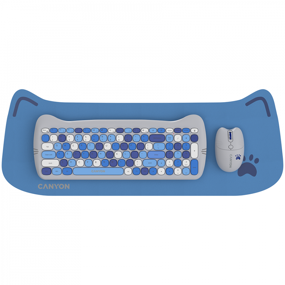 CANYON HSET-W6 EN Keyboard+Mouse Kitty Edition AAA+АА Wireless Blue