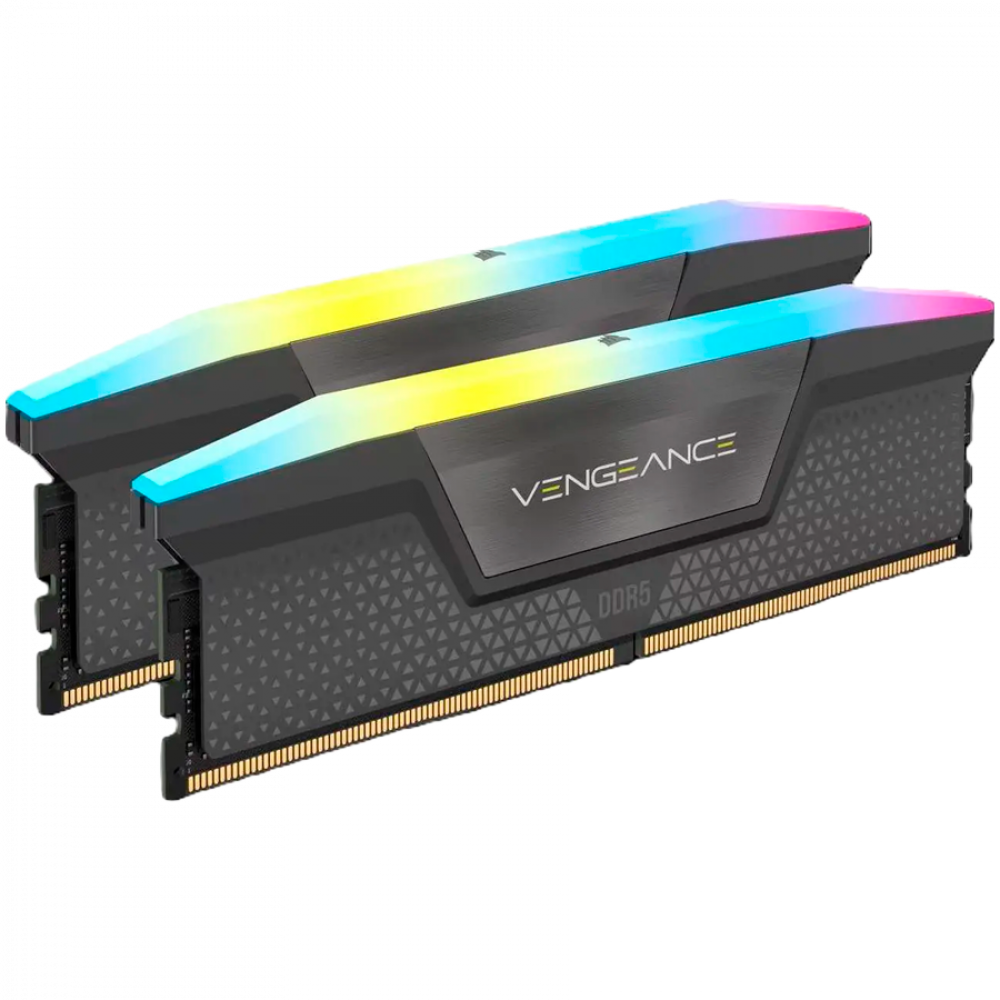 CORSAIR DDR5, 6000MT/s 32GB 2x16GB DIMM, Unbuffered, 36-44-44-96, Std PMIC, AMD EXPO & Intel XMP, VENGEANCE RGB DDR5 Grey Heatspreader, Black PCB, 1.30V