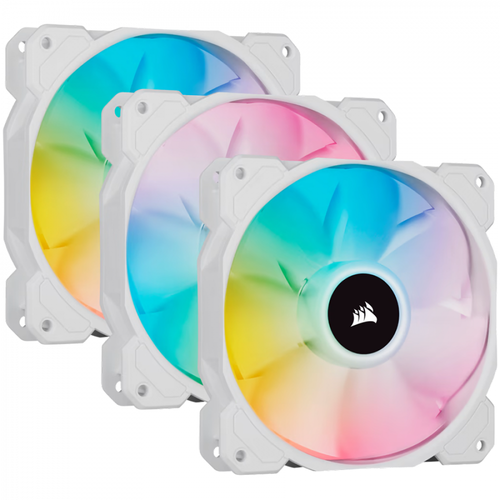 Corsair SP Series, White SP120 RGB ELITE, 120mm RGB LED Fan with AirGuide, Triple Pack with Lighting Node CORE