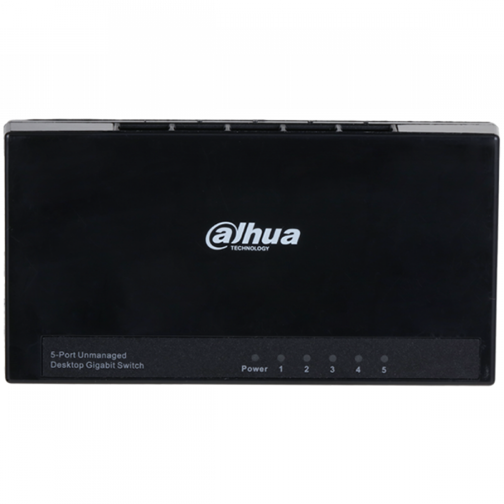 Dahua 5-Port Gigabit Ethernet Switch, L2, IEEE 802.3, IEEE 802.3u, IEEE 802.3ab, IEEE802.3x, switching capacity 10 Gbps, Packet Forwarding Rate 7.44 Mpps, Packet Buffer Memory 1.5 Mbi, MAC Table 2K, 1.6W