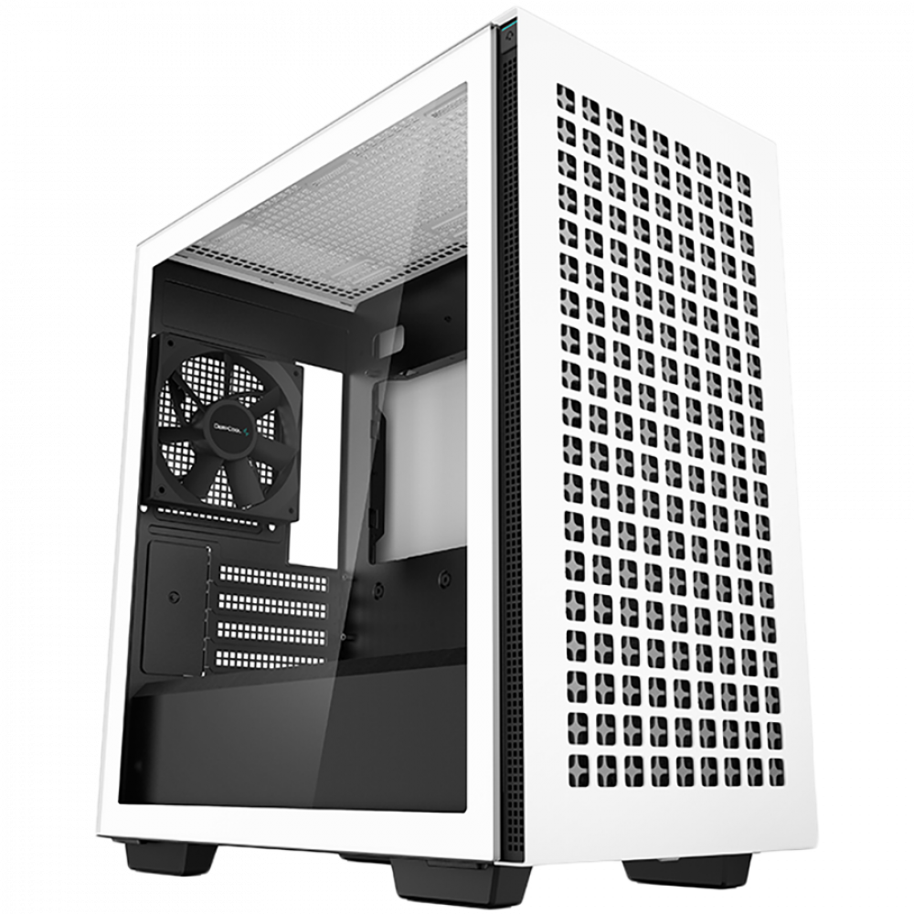 DeepCool CH370 WH, Mid Tower, Mini-ITX/Micro-ATX, 2xUSB3.0, 1xAudio, 1x120mm Pre-Installed Black Fan, Tempered Glass, Mesh Panel, White, R-CH370-WHNAM1-G-1