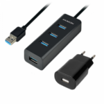 AXAGON HUE-S2BP 4x USB3.0 Charging Hub 1.2m Cable, MicroUSB Charging, Incl. AC Adapter