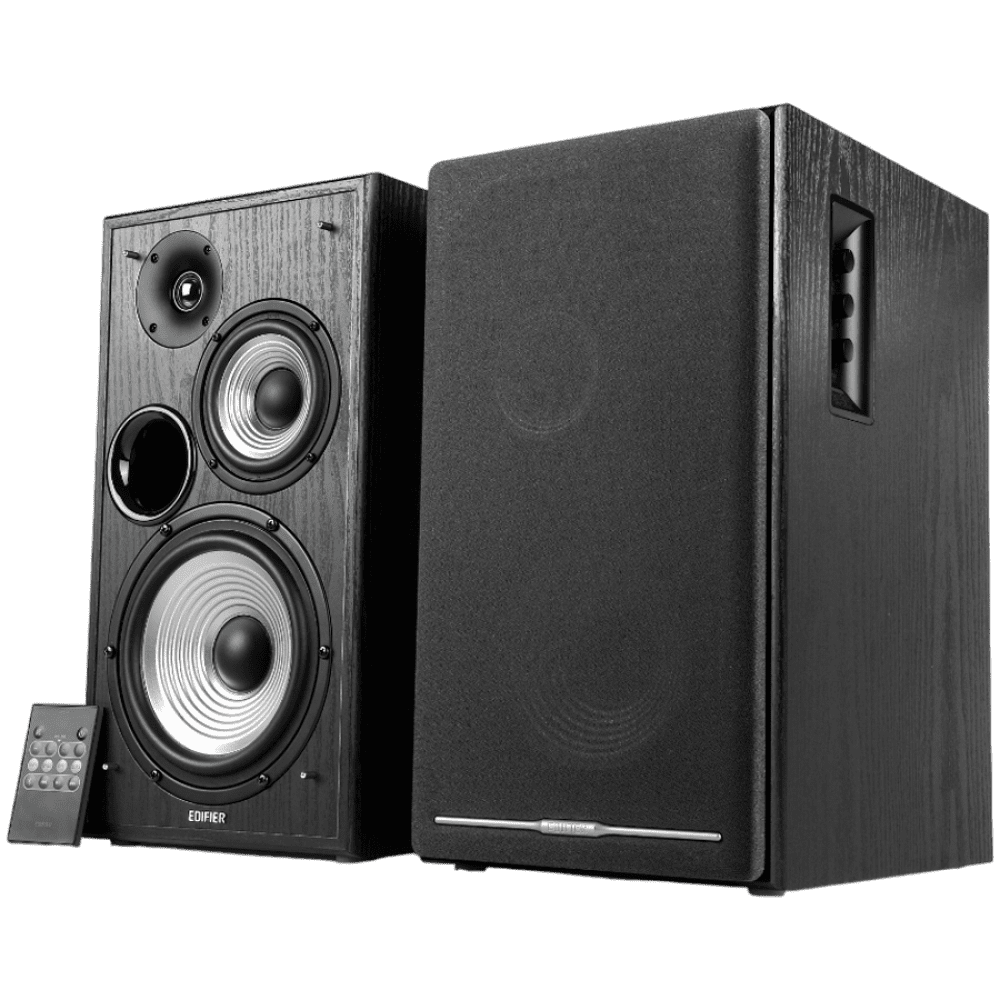 Edifier R2750DB 2.0 Bookshelf Speakers, BT V5.1, Optical, Coaxial, RCA, 0.75-inch Tweeters, 4-inch Drivers, 6.5-inch Woofers, Sub-Out, 136W (RMS), Control Knobs and Remote Control, Black